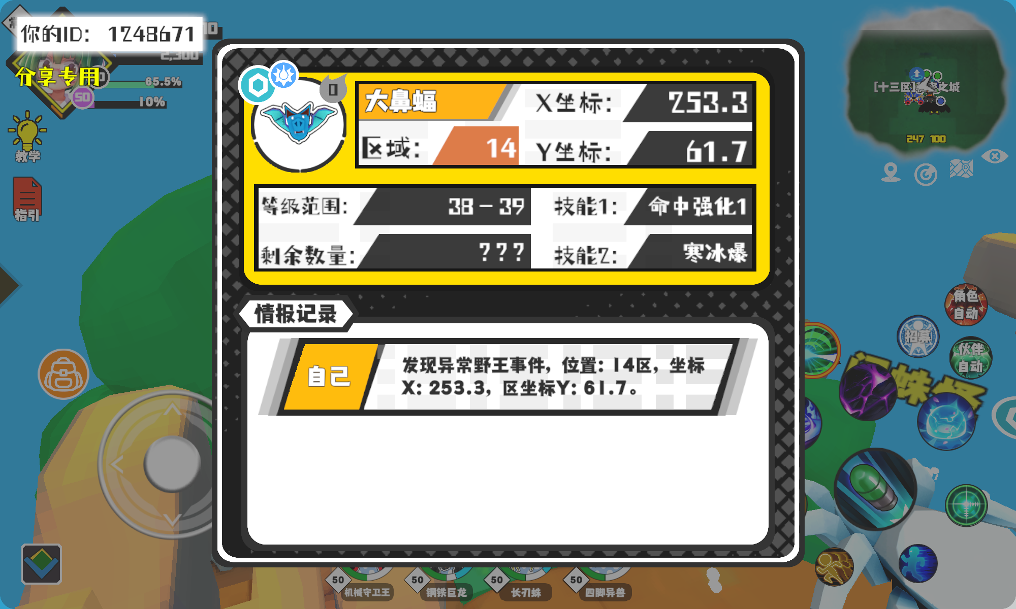 幸运时刻分享! 【野王异常出没】11月8日下午10点 - 大鼻蝠【强度0】 【14区】 【X:253.3, Y:61.7】#超数据世界