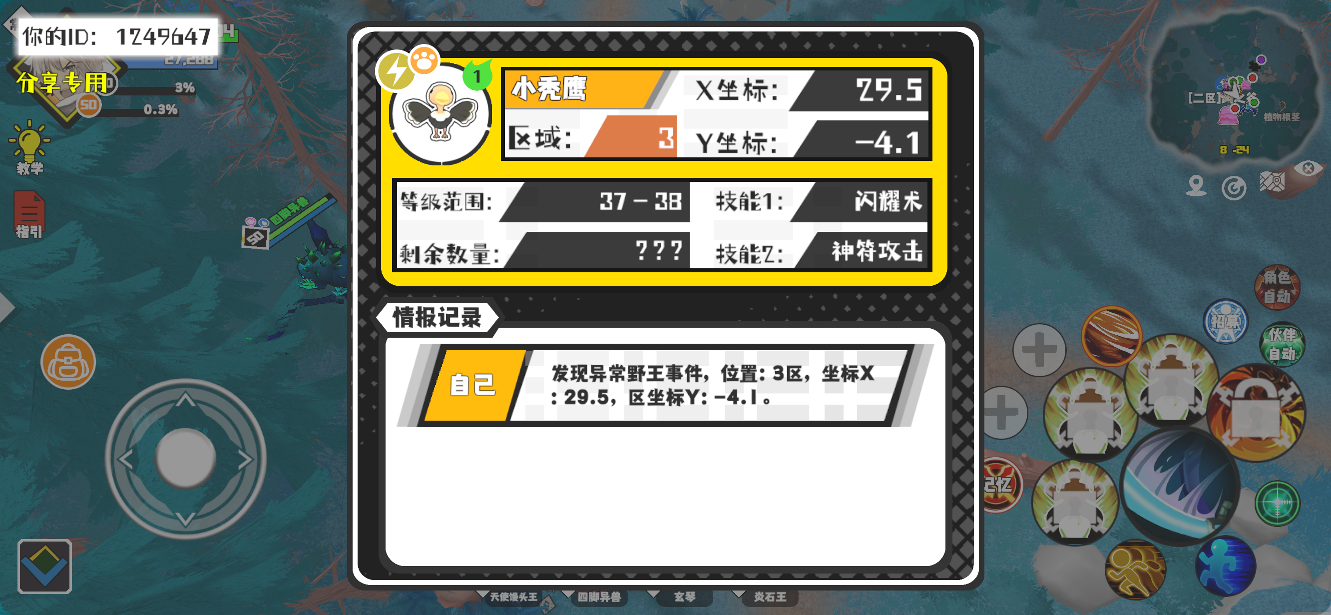 幸运时刻分享! 【野王异常出没】11月8日下午12点 - 小秃鹰【强度1】 【3区】 【X:29.5, Y:-4.1】#超数据世界