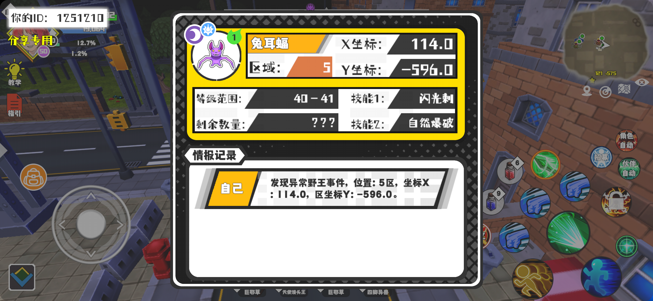 #超数据世界 幸运时刻分享! 【野王异常出没】11月9日下午4点 - 兔耳蝠【强度1】 【5区】 【X:114.0, Y:-596.0】
