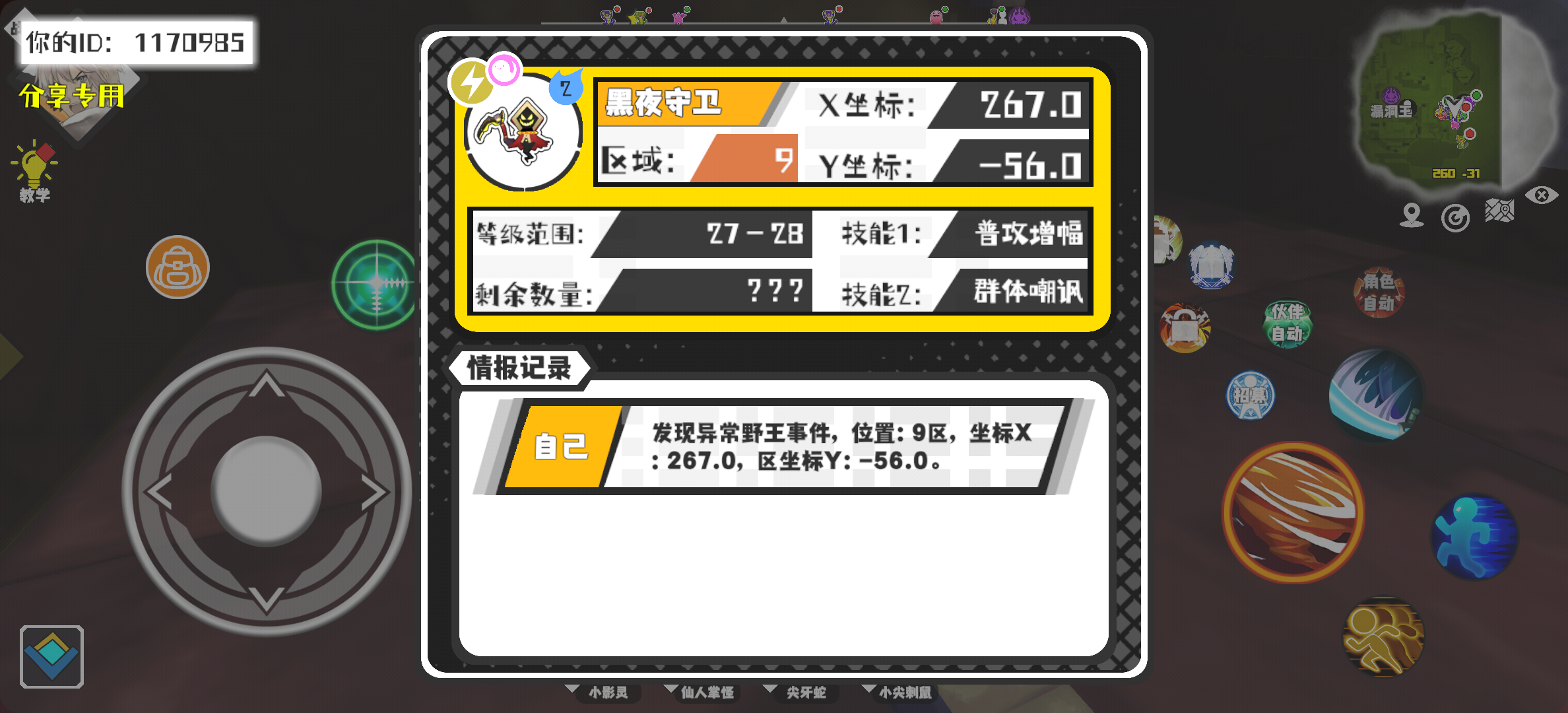 #超数据世界 幸运时刻分享! 【野王异常出没】11月8日下午11点 - 黑夜守卫【强度2】 【9区】 【X:267.0, Y:-56.0】