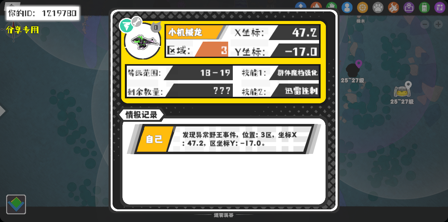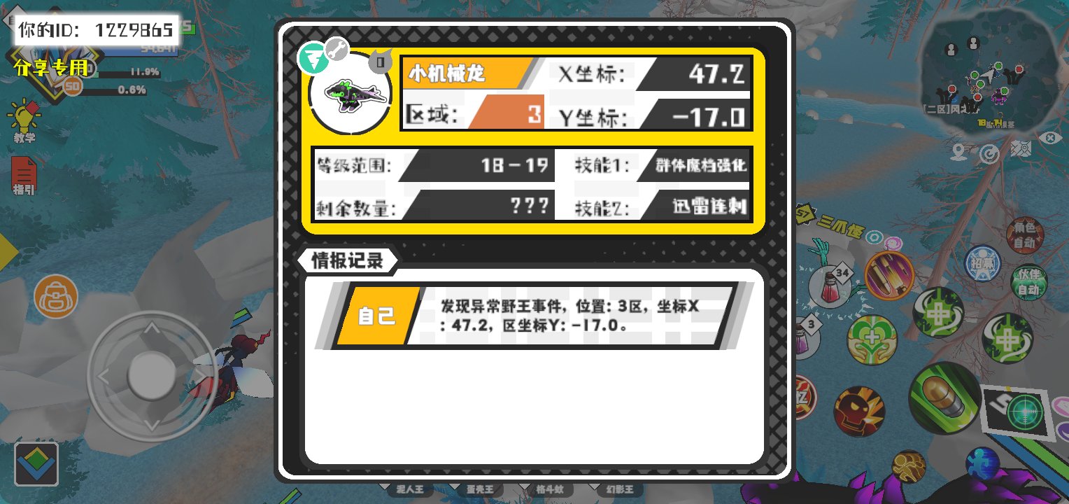 幸运时刻分享! 【野王异常出没】11月8日下午10点 - 小机械龙【强度0】 【3区】 【X:47.2, Y:-17.0】#超数据世界