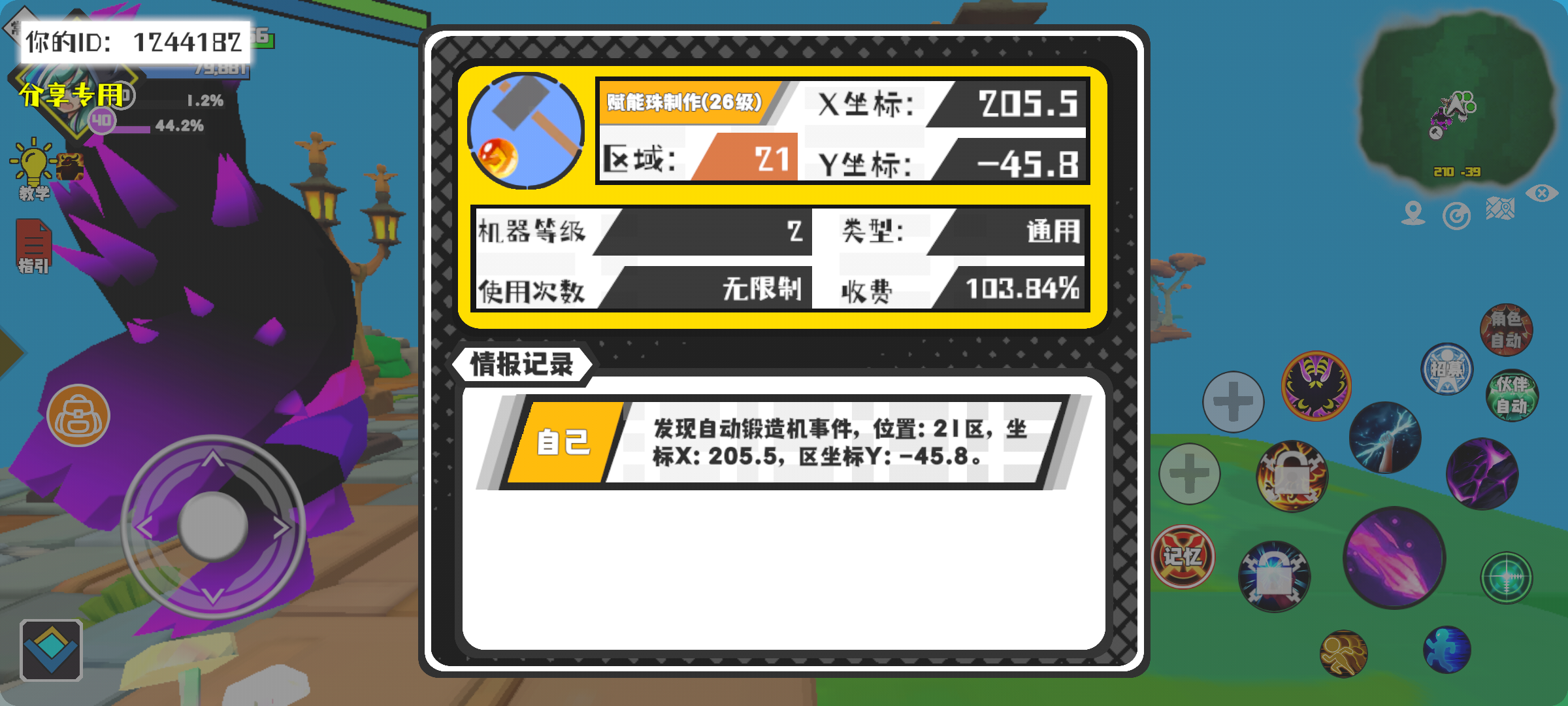 幸运时刻分享! 【自动锻造机】11月8日下午9点 - 赋能珠制作(26级)【2级机器】 【21区】 【X:205.5, Y:-45.8】#超数据世界