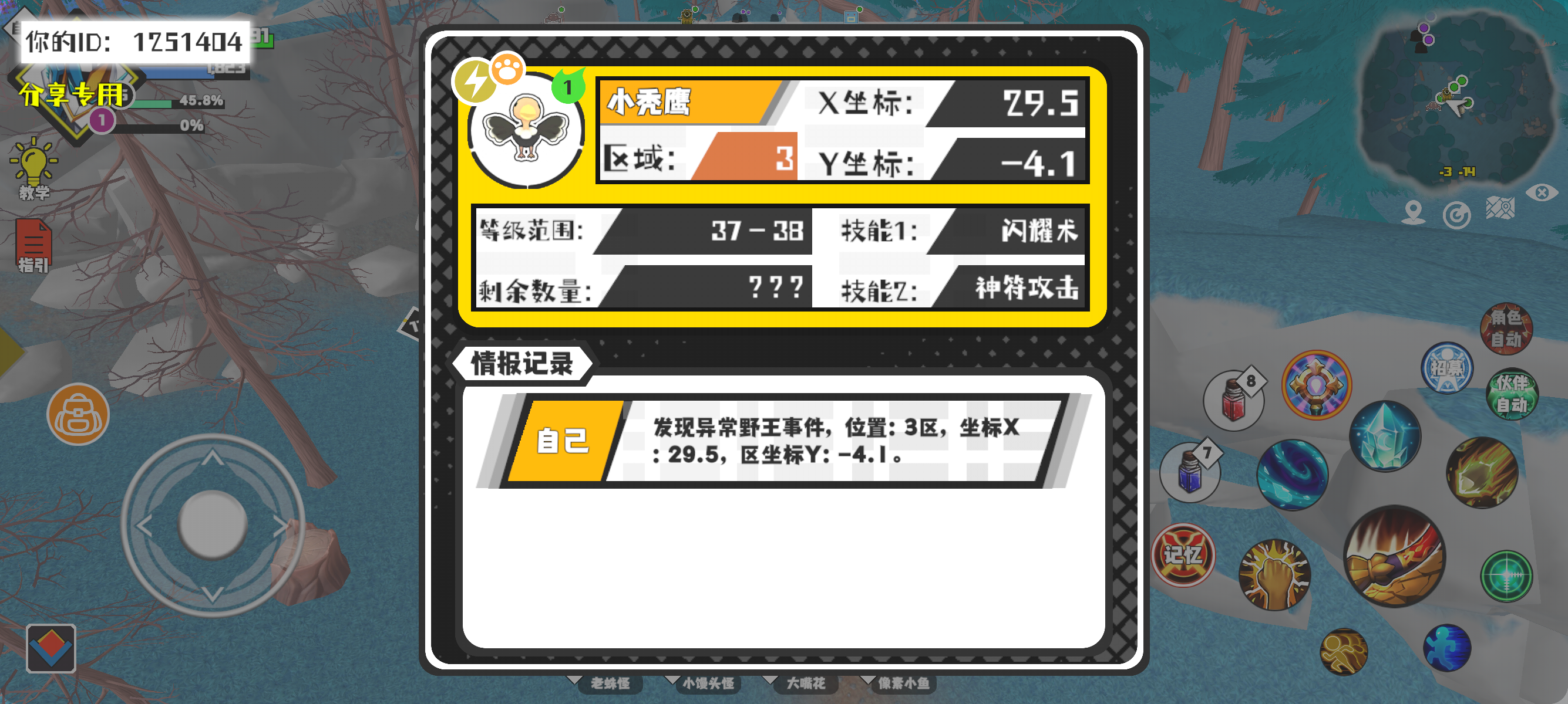 幸运时刻分享! 【野王异常出没】11月8日下午1点 - 小秃鹰【强度1】 【3区】 【X:29.5, Y:-4.1】#超数据世界