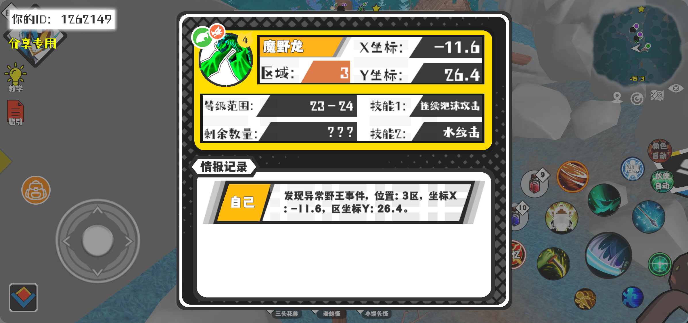 幸运时刻分享! 【野王异常出没】1月12日下午10点 - 魔野龙【强度4】 【3区】 【X:-11.6, Y:26.4】#超数据世界