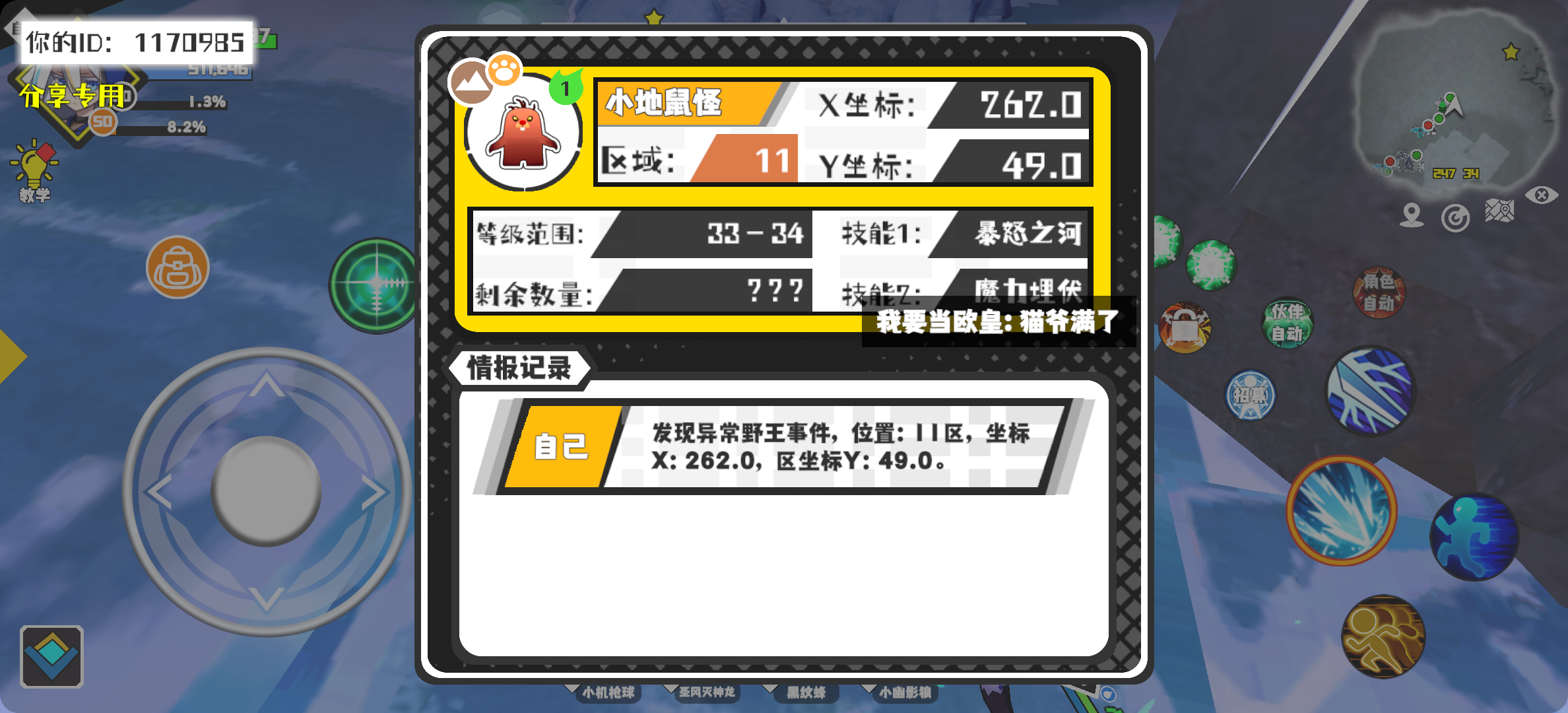 幸运时刻分享! 【野王异常出没】11月4日下午11点 - 小地鼠怪【强度1】 【11区】 【X:262.0, Y:49.0】#超数据世界