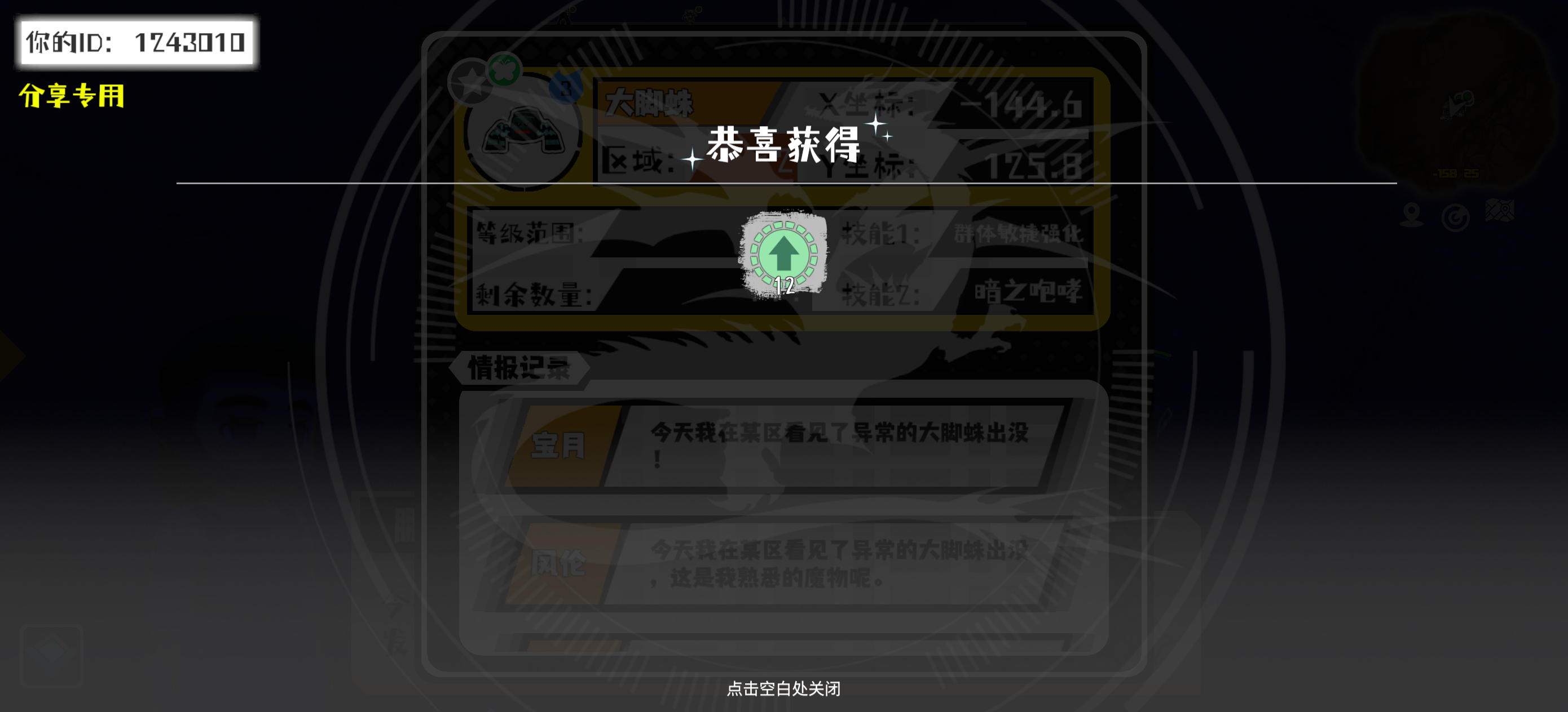 幸运时刻分享! 【魔物异常出没】11月5日上午2点 - 大脚蛛【强度3】 【2区】 【X:-144.6, Y:125.8】#超数据世界