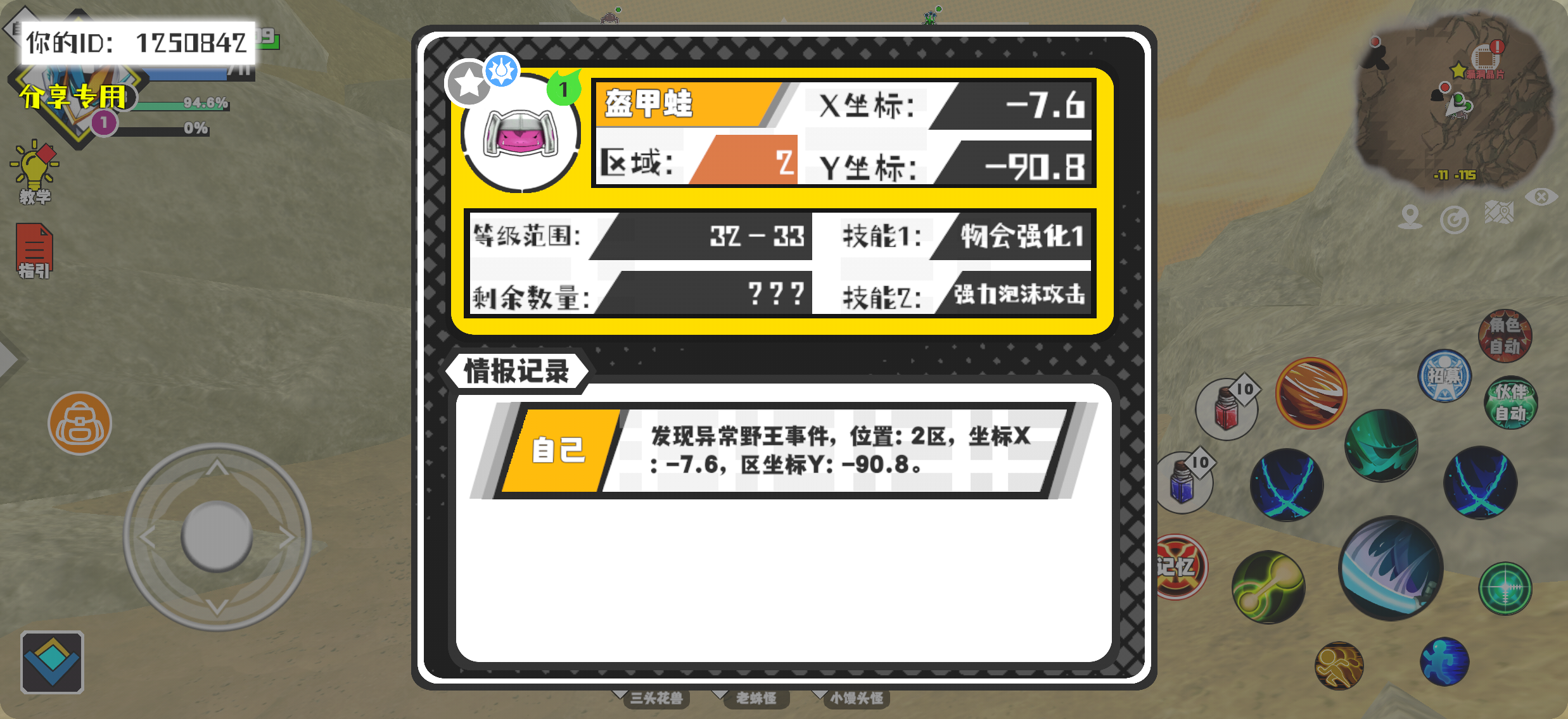幸运时刻分享! 【野王异常出没】11月4日下午10点 - 盔甲蛙【强度1】 【2区】 【X:-7.6, Y:-90.8】#超数据世界