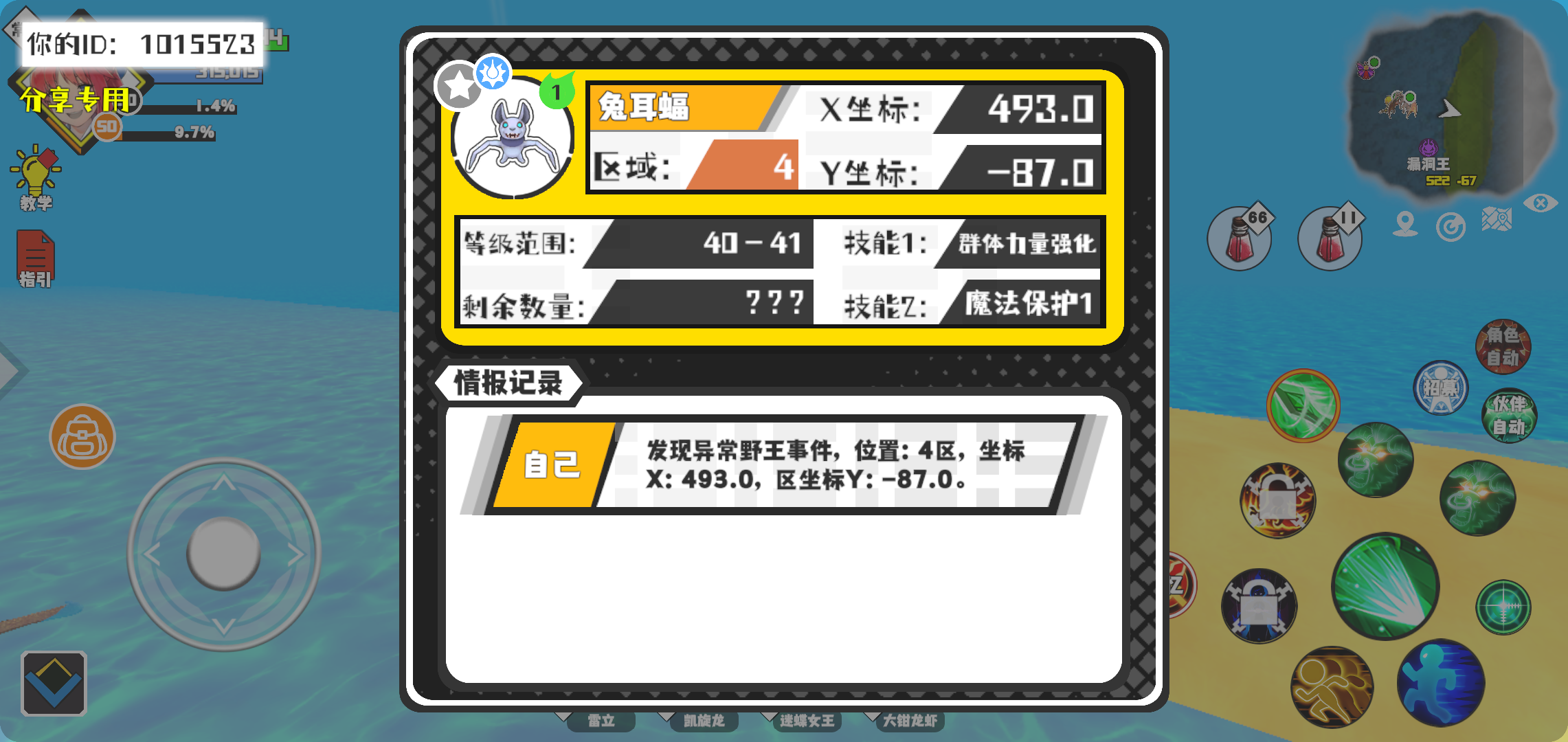幸运时刻分享! 【野王异常出没】11月3日下午10点 - 兔耳蝠【强度1】 【4区】 【X:493.0, Y:-87.0】#超数据世界