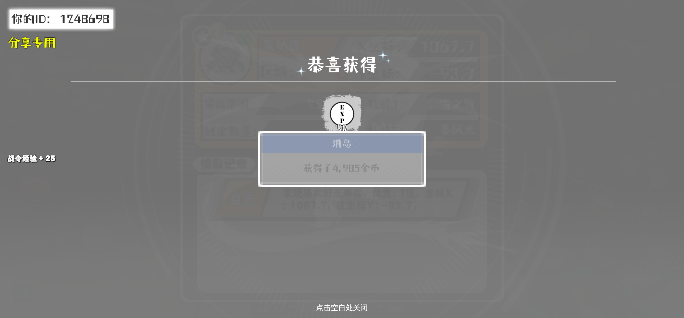 #超数据世界 幸运时刻分享! 【野王异常出没】11月4日上午2点 - 采矿怪【强度1】 【7区】 【X:1067.7, Y:-93.7】
