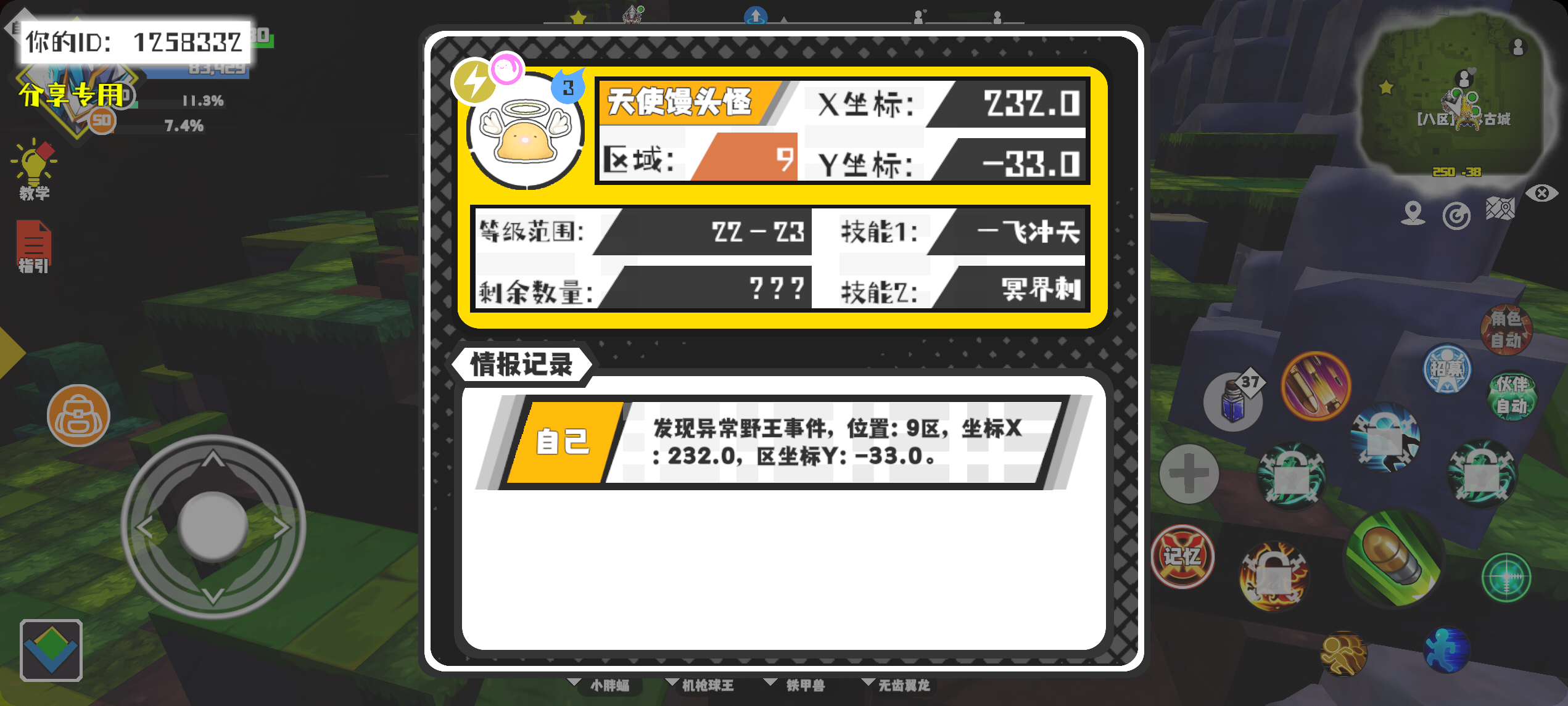 幸运时刻分享! 【野王异常出没】1月6日下午8点 - 天使馒头怪【强度3】 【9区】 【X:232.0, Y:-33.0】#超数据世界