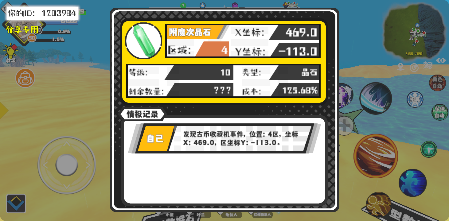 幸运时刻分享! 【古币收藏机】1月6日下午7点 - 附魔次晶石 【4区】 【X:469.0, Y:-113.0】#超数据世界