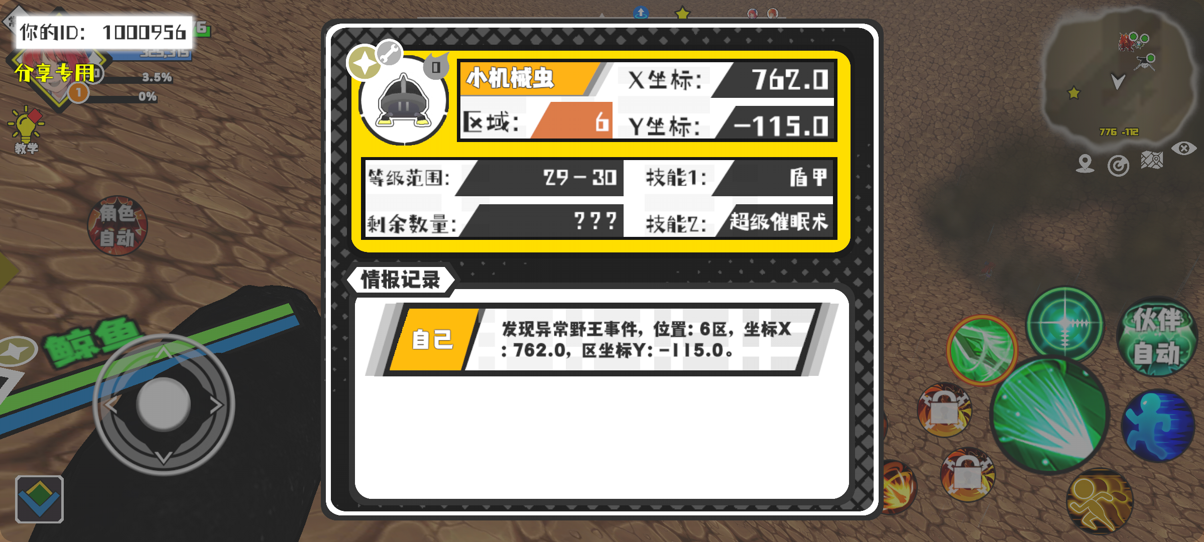 幸运时刻分享! 【野王异常出没】11月2日下午10点 - 小机械虫【强度0】 【6区】 【X:762.0, Y:-115.0】#超数据世界
