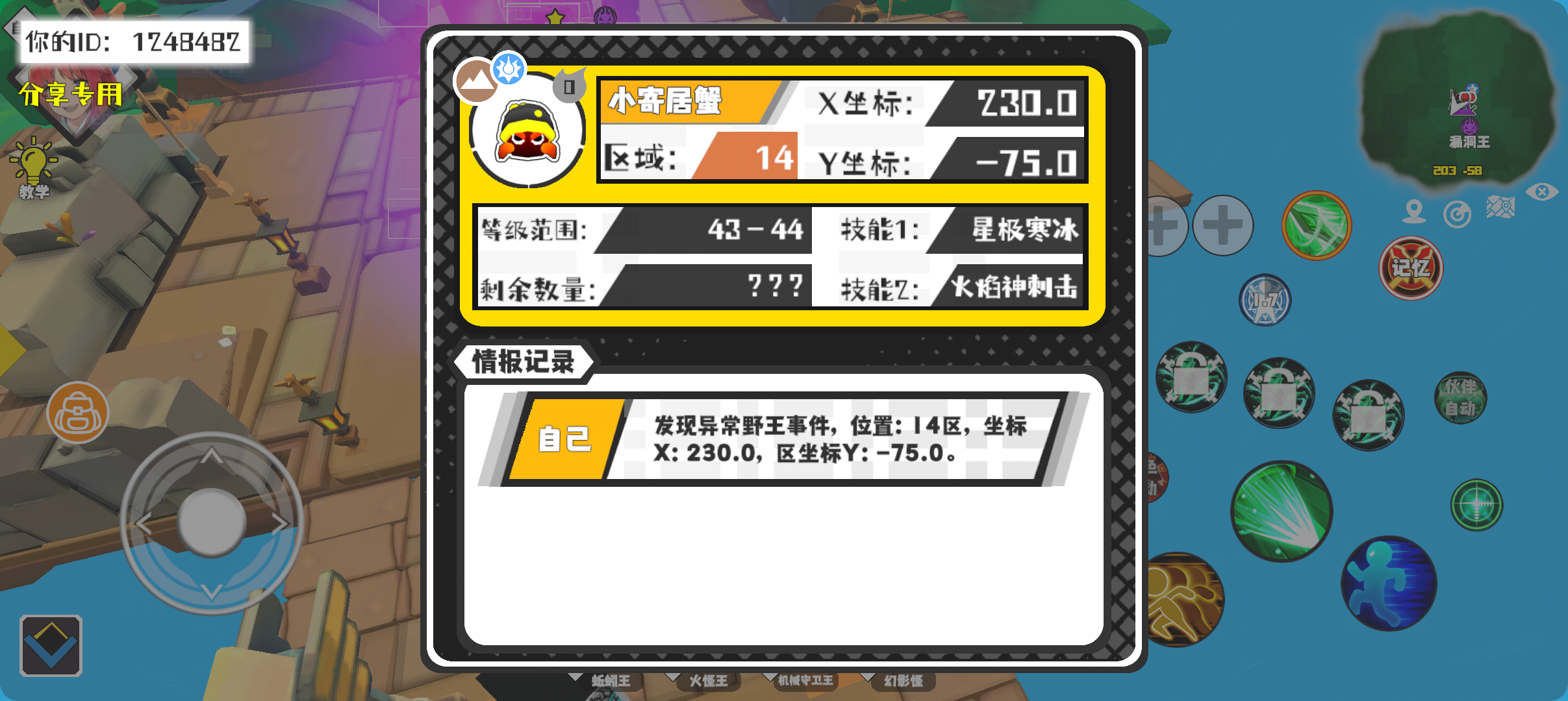 幸运时刻分享! 【野王异常出没】11月2日上午9点 - 小寄居蟹【强度0】 【14区】 【X:230.0, Y:-75.0】#超数据世界