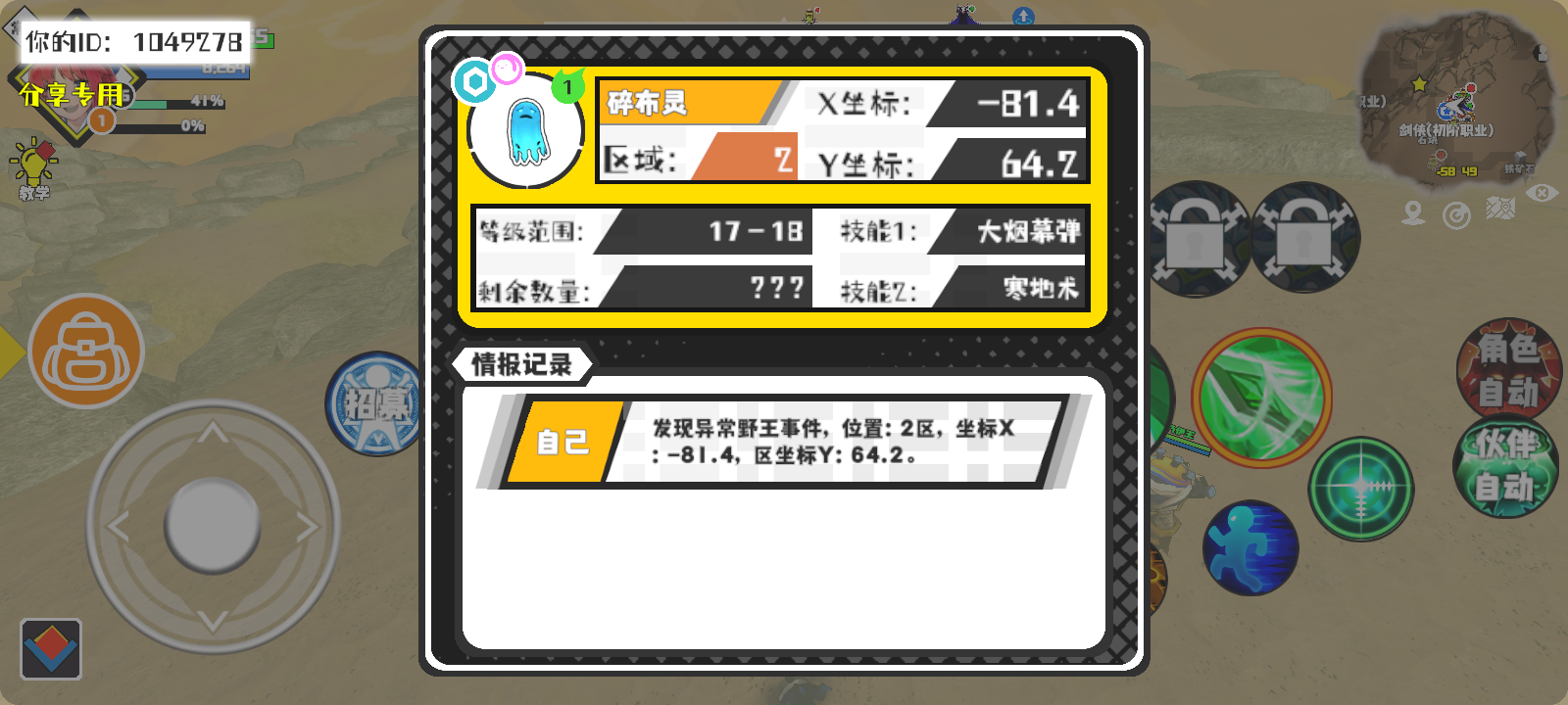 幸运时刻分享! 【野王异常出没】11月1日下午11点 - 碎布灵【强度1】 【2区】 【X:-81.4, Y:64.2】#超数据世界
