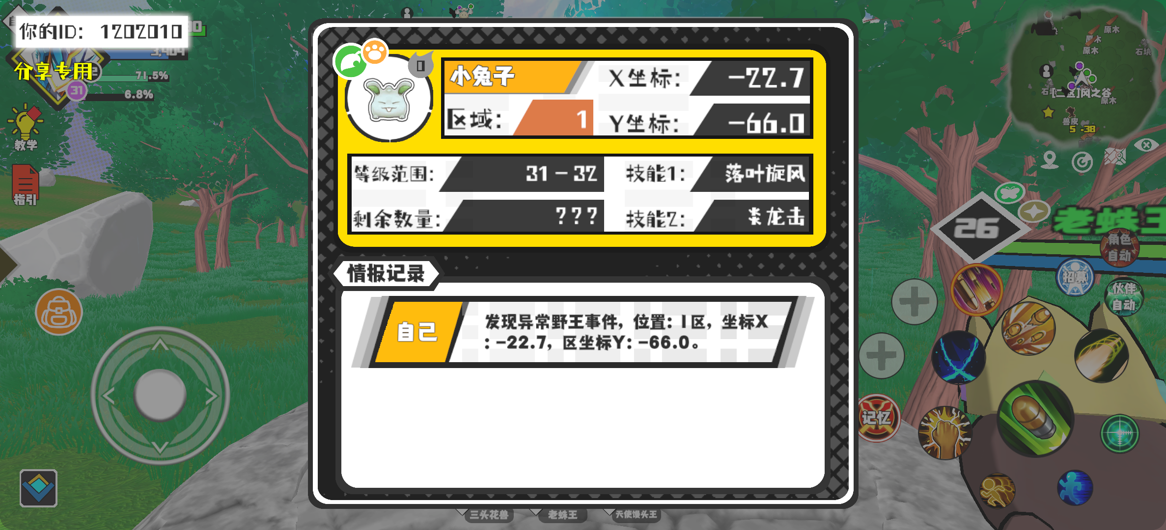 幸运时刻分享! 【野王异常出没】11月1日下午10点 - 小兔子【强度0】 【1区】 【X:-22.7, Y:-66.0】#超数据世界