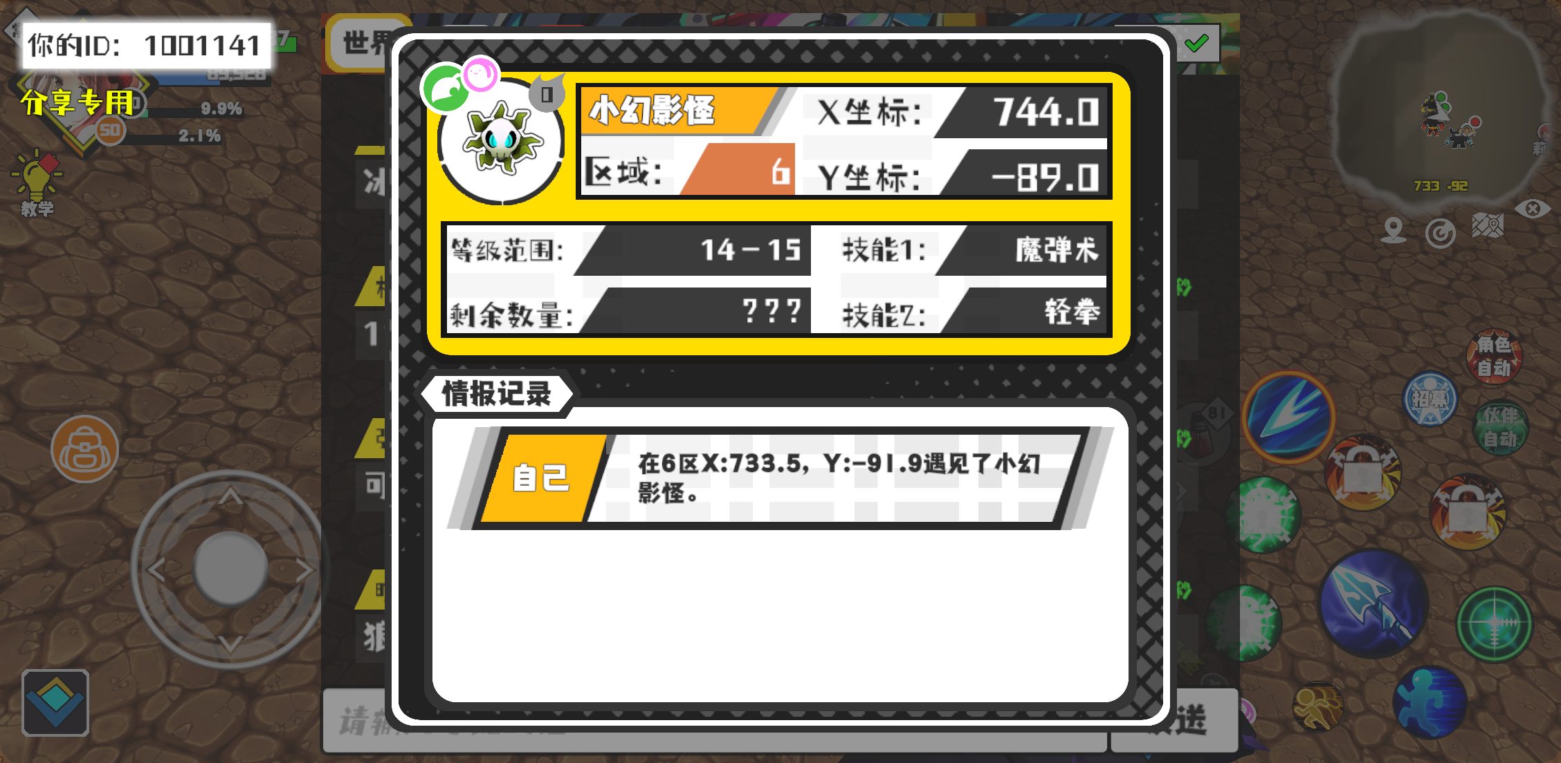 #超数据世界 幸运时刻分享! 【魔物异常出没】11月1日下午9点 - 小幻影怪【强度0】 【6区】 【X:744.0, Y:-89.0】