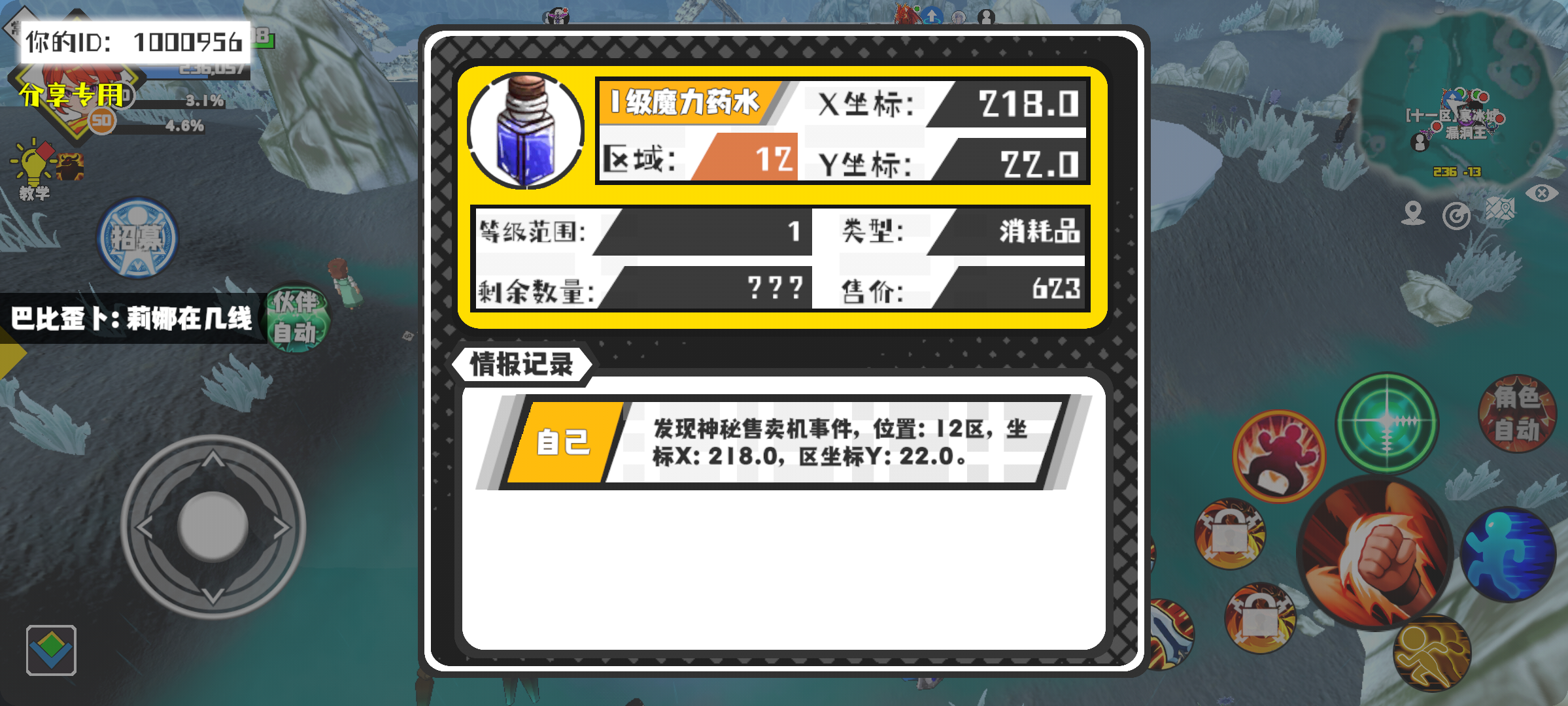#超数据世界 幸运时刻分享! 【神秘售卖机】11月1日上午8点 - 1级魔力药水【1级 】【稀有度:精良】 【12区】 【X:218.0, Y:22.0】