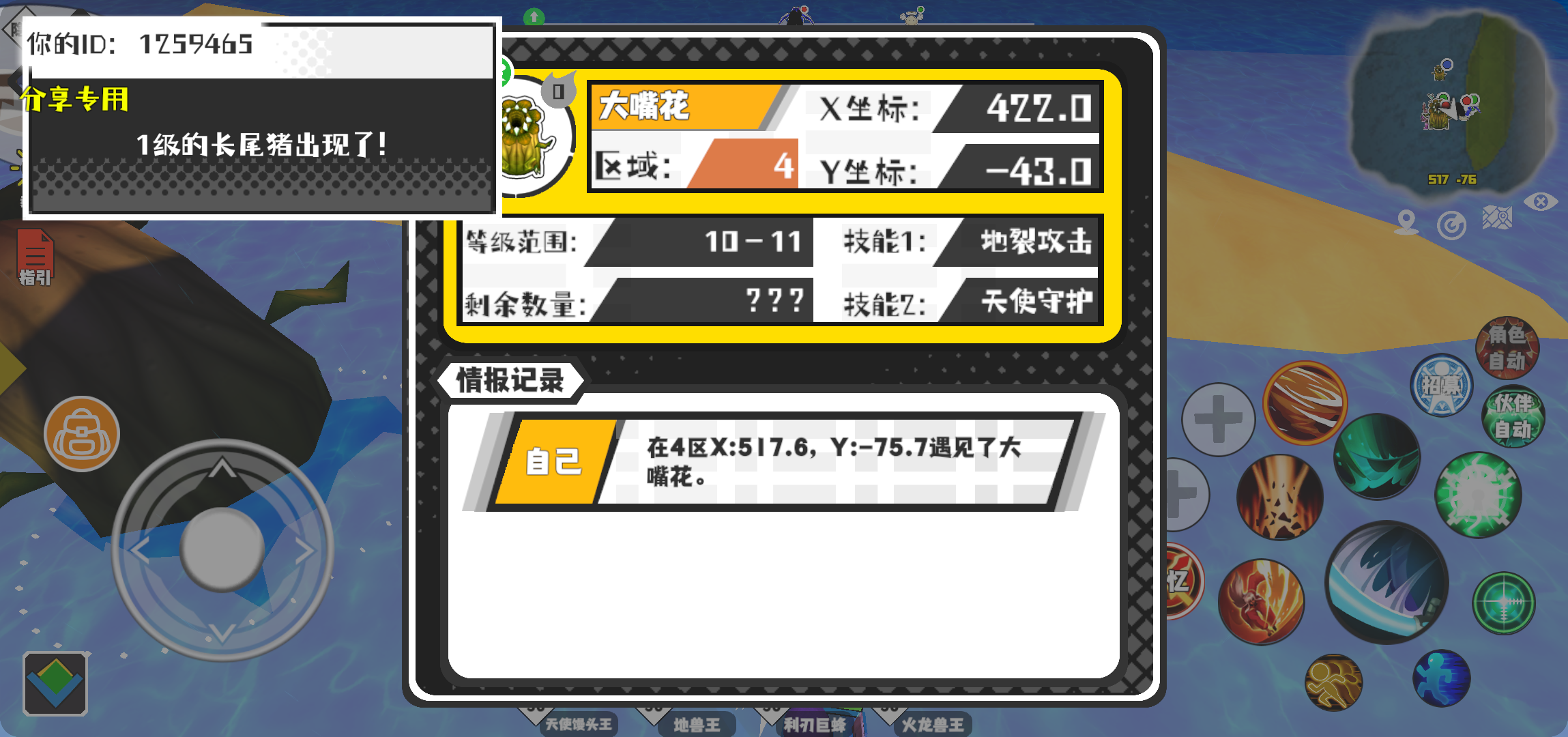 幸运时刻分享! 【魔物异常出没】1月6日上午11点 - 大嘴花【强度0】 【4区】 【X:422.0, Y:-43.0】#超数据世界