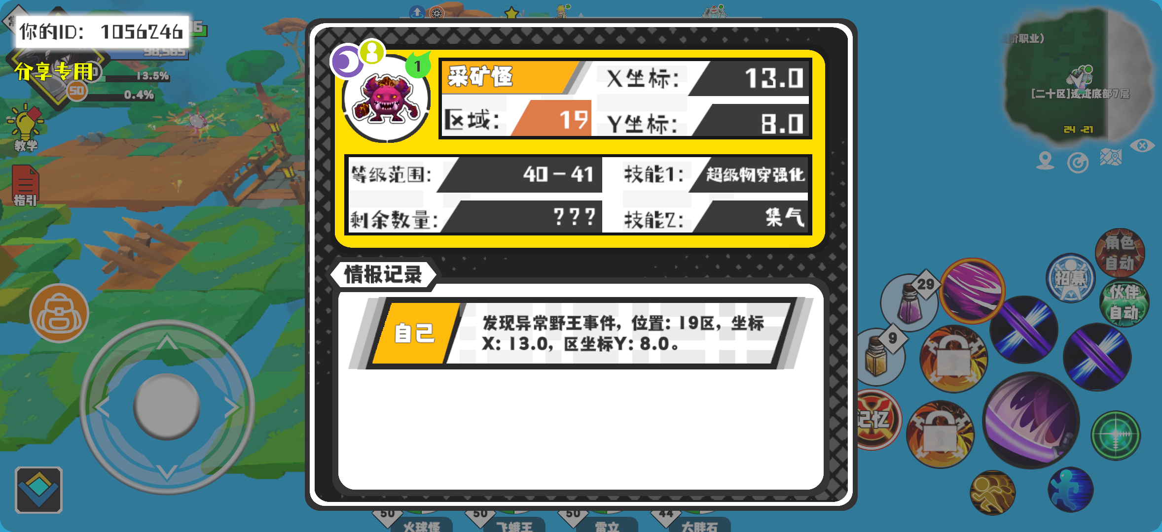 幸运时刻分享! 【野王异常出没】10月29日上午10点 - 采矿怪【强度1】 【19区】 【X:13.0, Y:8.0】#超数据世界