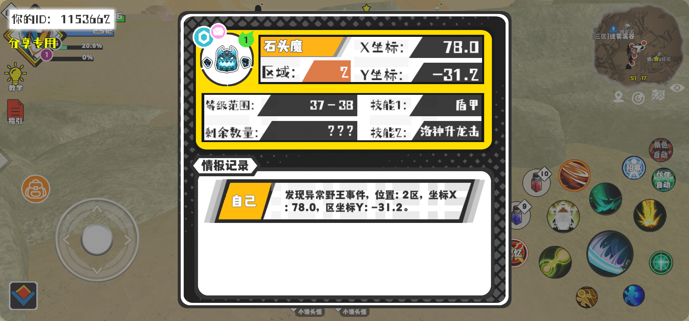 幸运时刻分享! 【野王异常出没】10月28日上午9点 - 石头魔【强度1】 【2区】 【X:78.0, Y:-31.2】#超数据世界