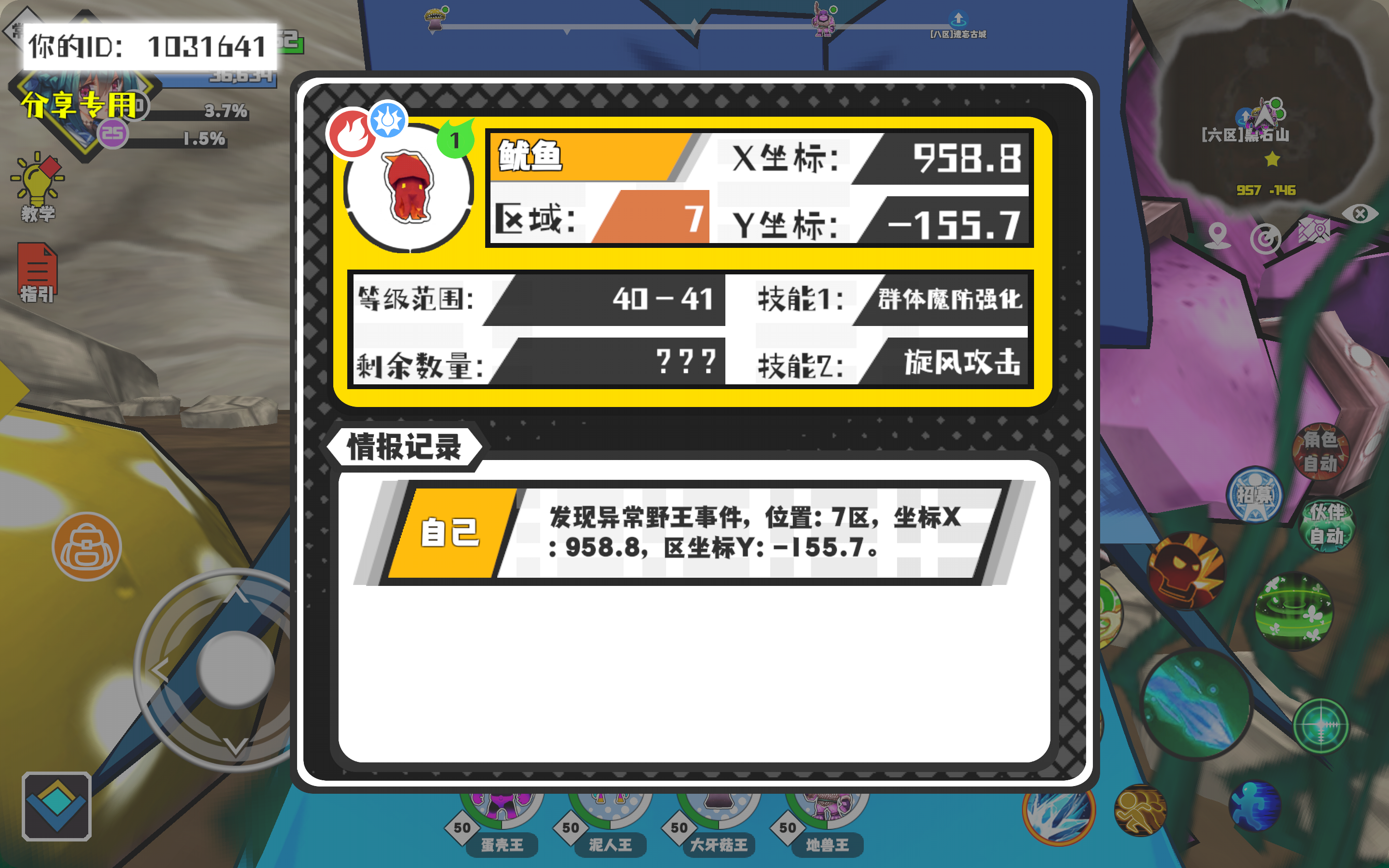 幸运时刻分享! 【野王异常出没】10月26日下午8点 - 鱿鱼【强度1】 【7区】 【X:958.8, Y:-155.7】#超数据世界