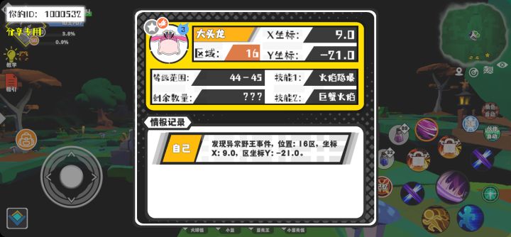 幸运时刻分享! 【野王异常出没】10月26日上午12点 - 大头龙【强度3】 【16区】 【X:9.0, Y:-21.0】#超数据世界