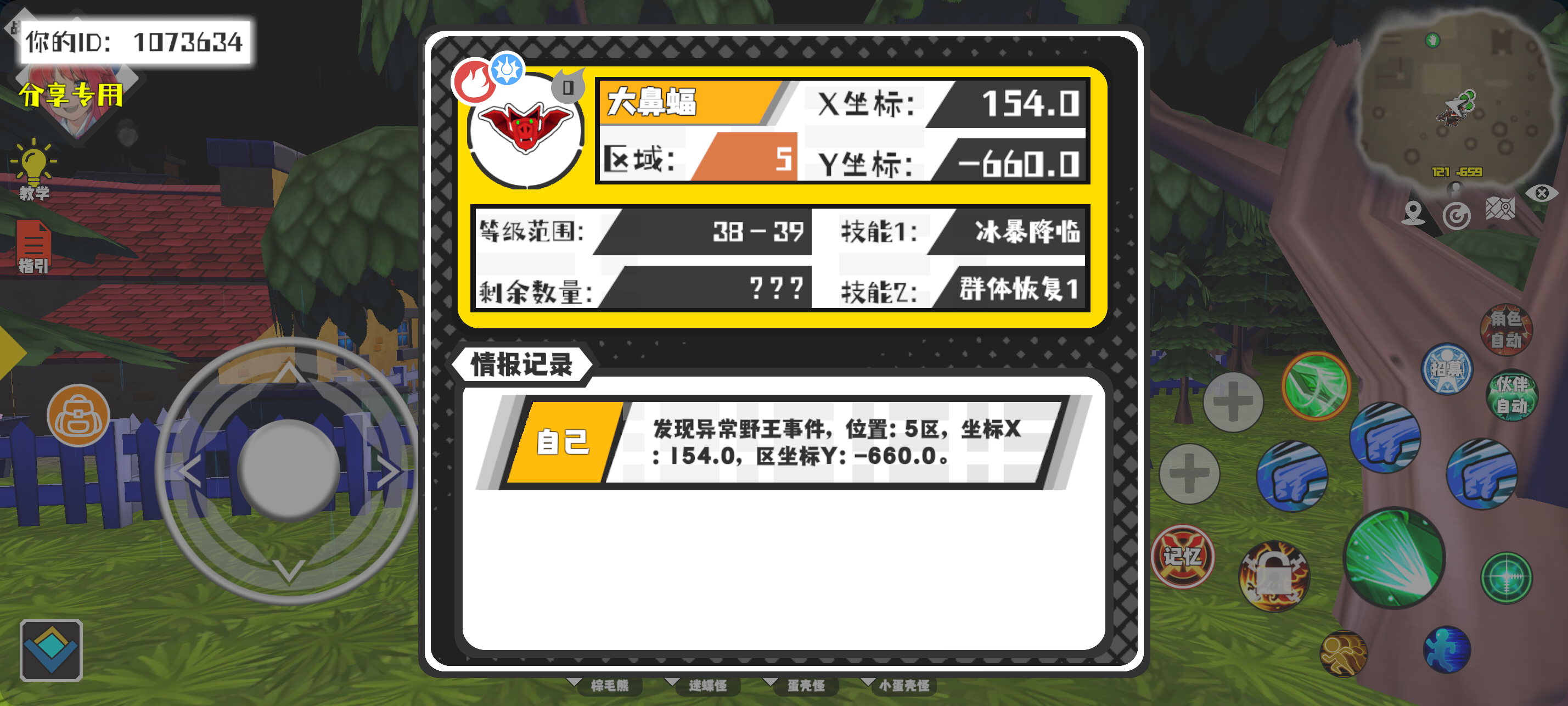 幸运时刻分享! 【野王异常出没】1月5日下午10点 - 大鼻蝠【强度0】 【5区】 【X:154.0, Y:-660.0】#超数据世界