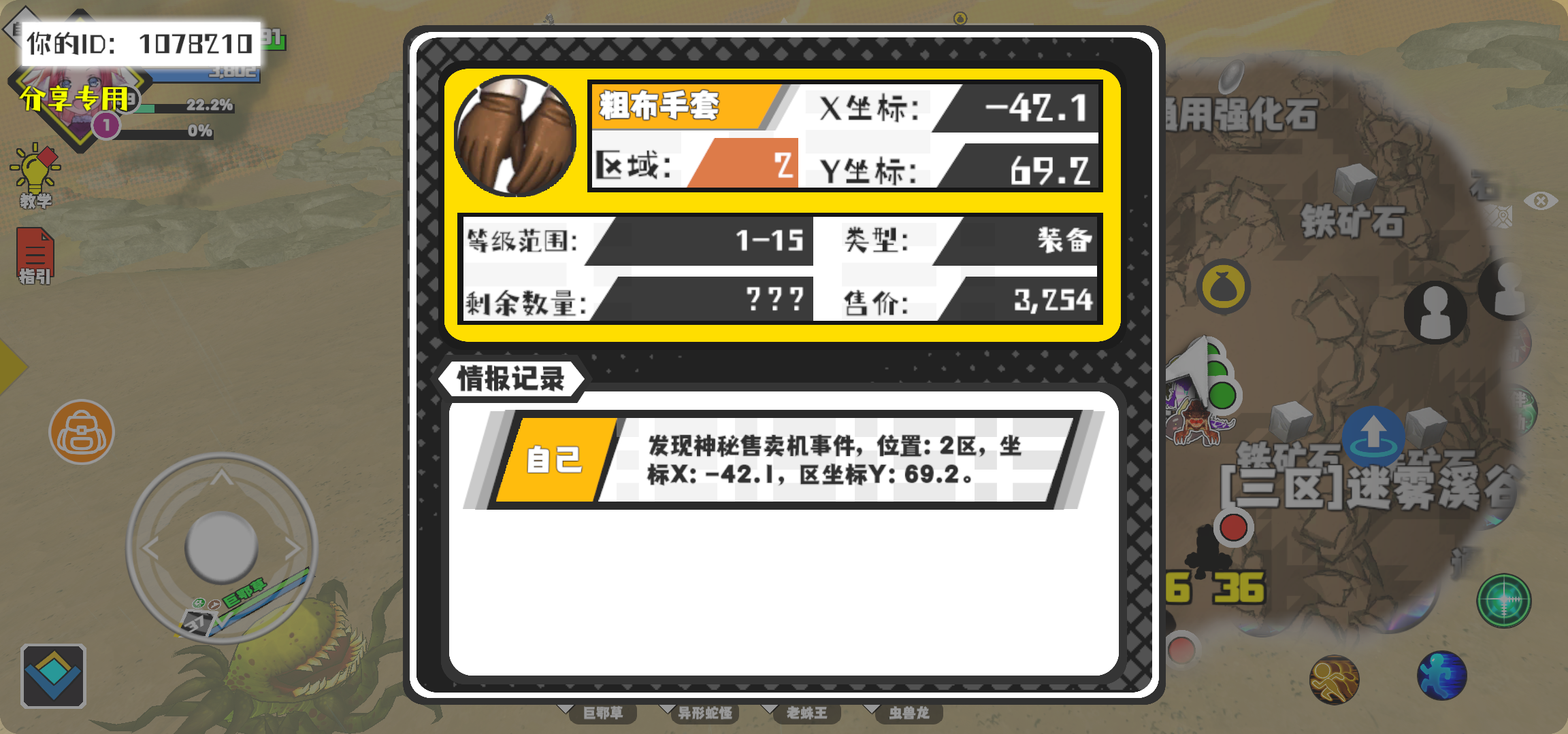 幸运时刻分享! 【神秘售卖机】1月4日下午12点 - 粗布手套【1-15级 】【稀有度:精良】 【2区】 【X:-42.1, Y:69.2】#超数据世界
