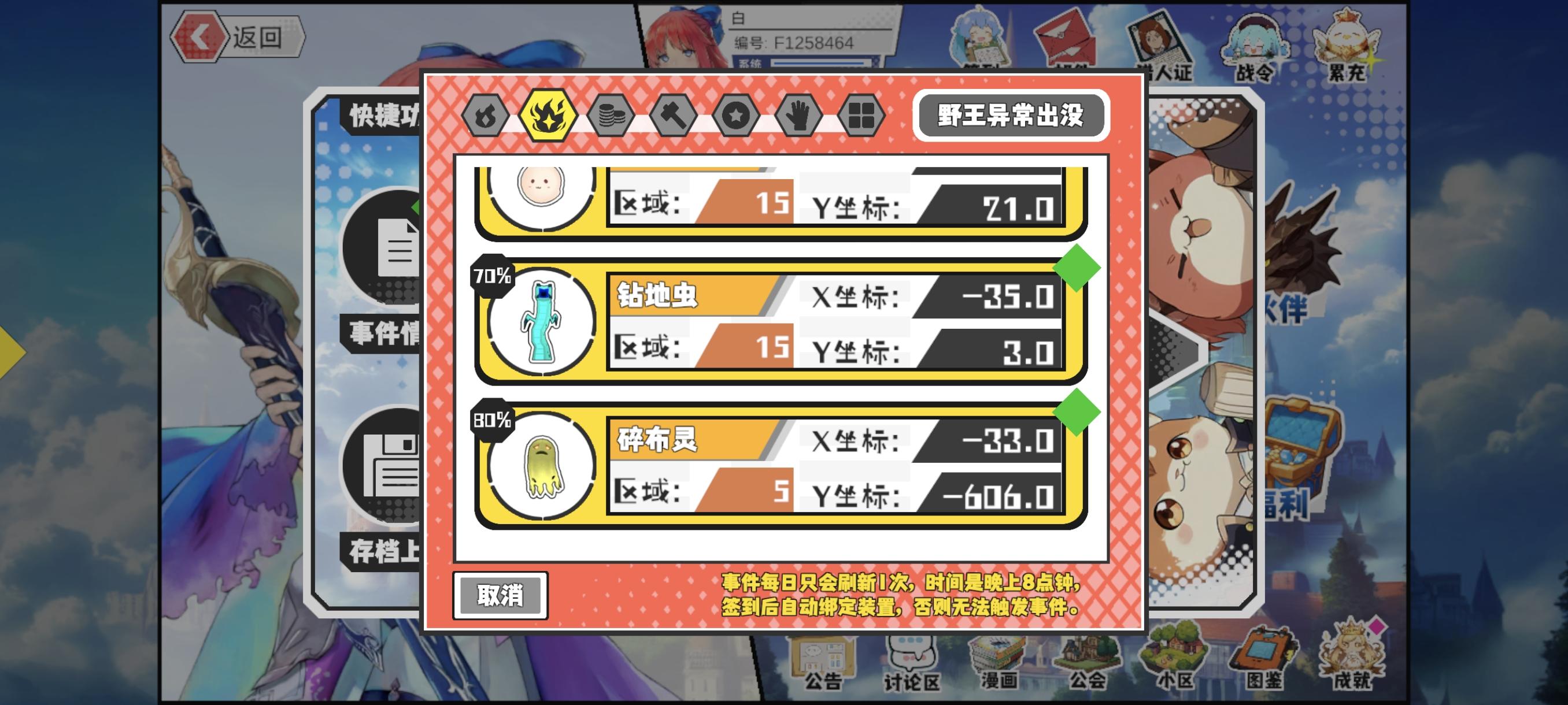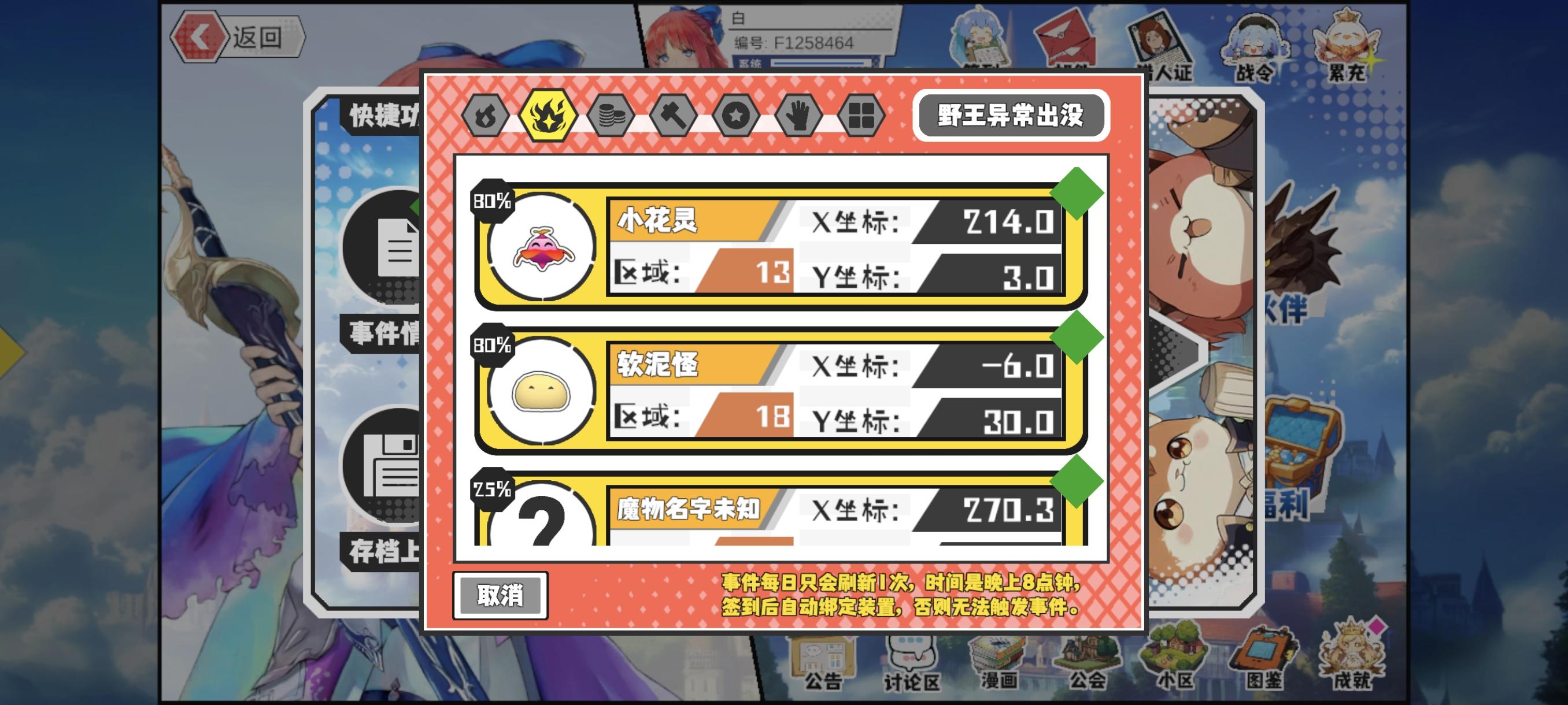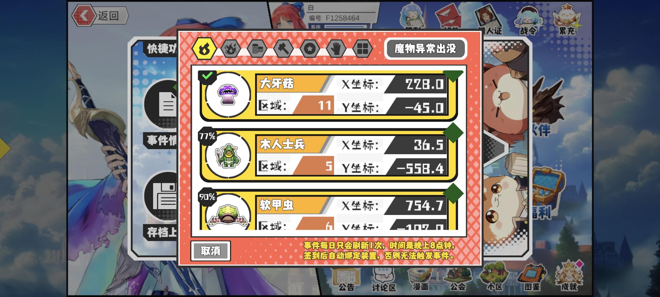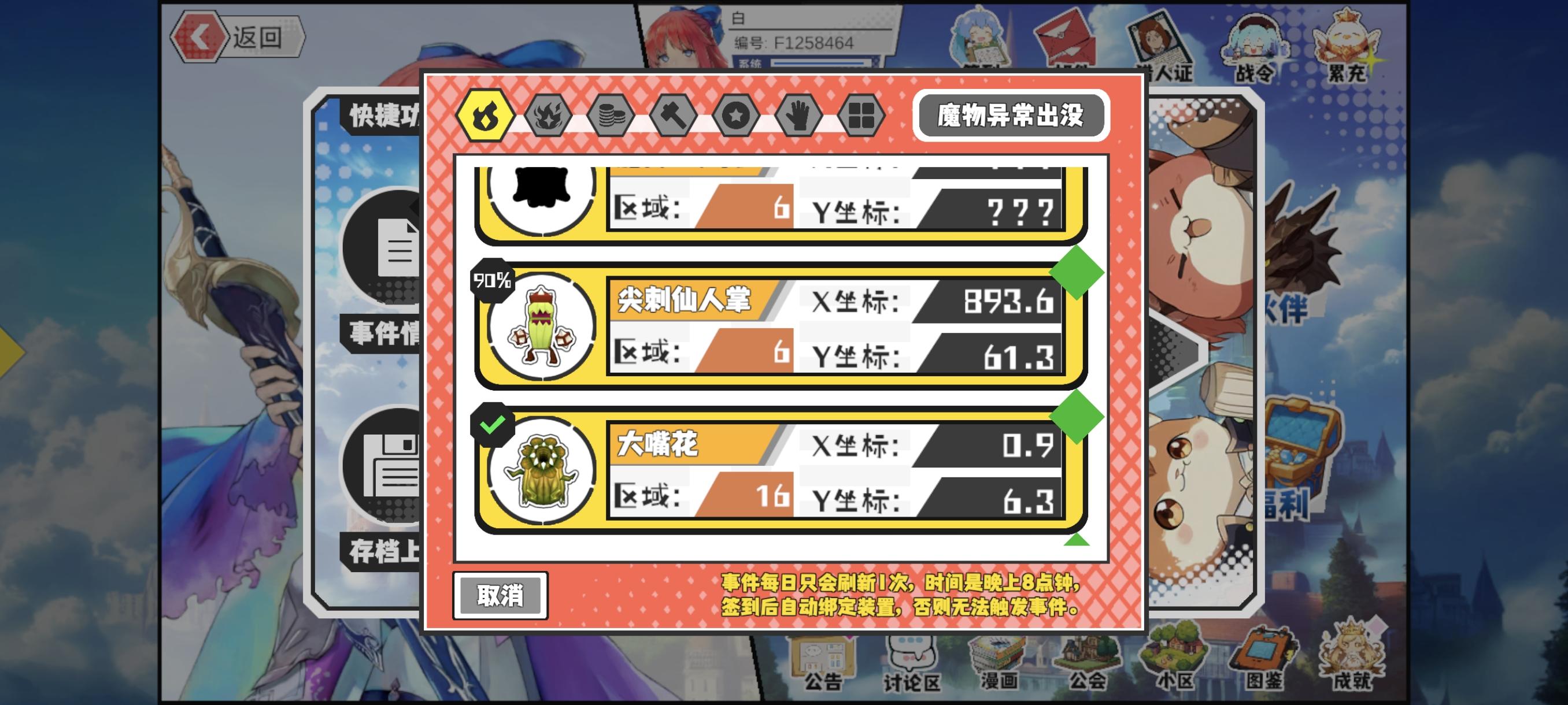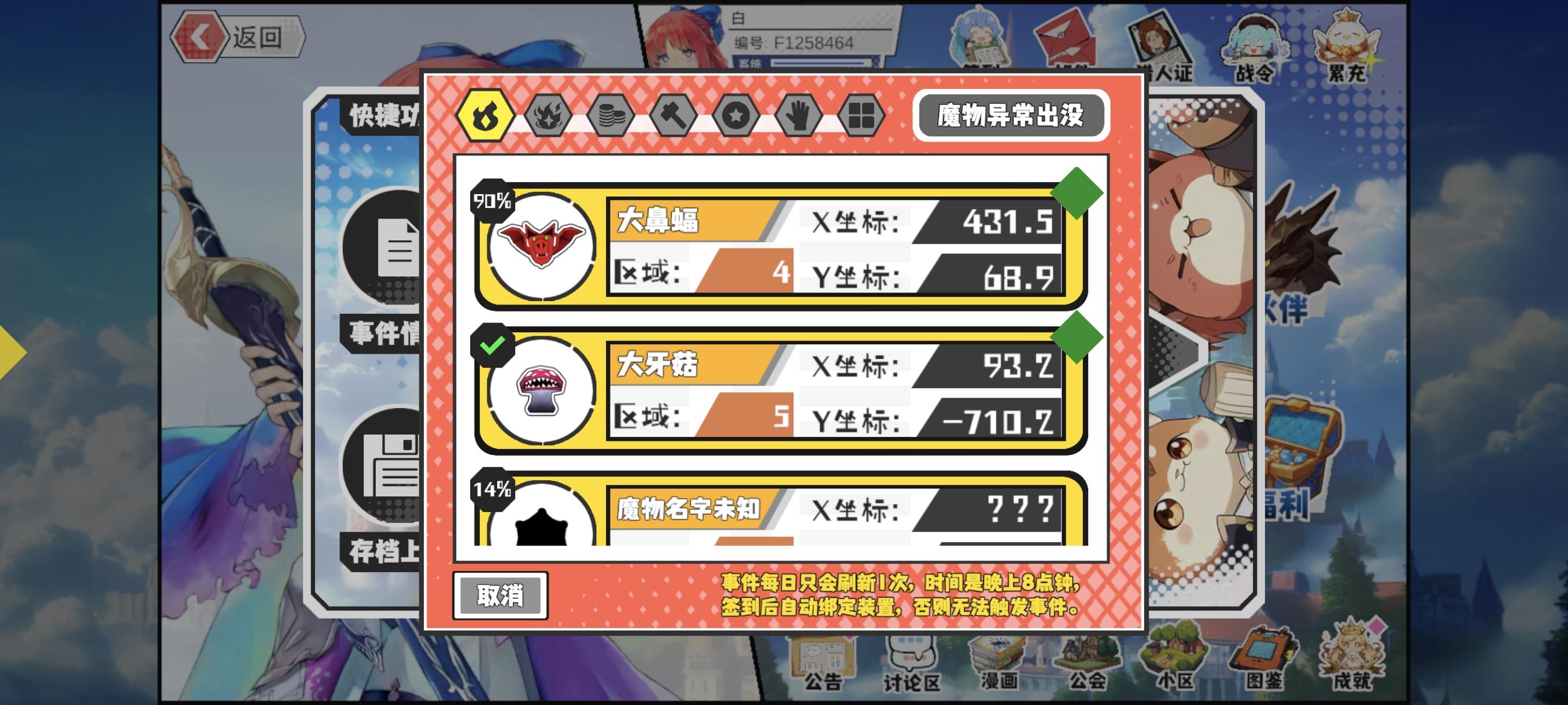 幸运时刻分享! 【魔物异常出没】1月3日下午4点 - 大牙菇【强度0】 【11区】 【X:314.0, Y:-90.0】#超数据世界