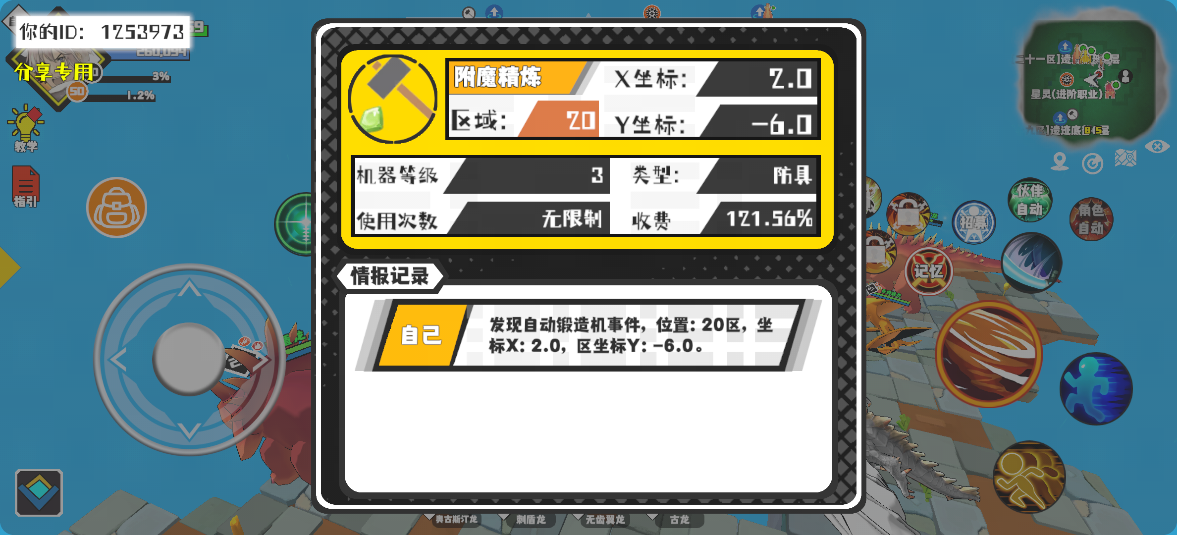 幸运时刻分享! 【自动锻造机】1月2日下午9点 - 附魔精炼【3级机器】 【20区】 【X:2.0, Y:-6.0】#超数据世界
