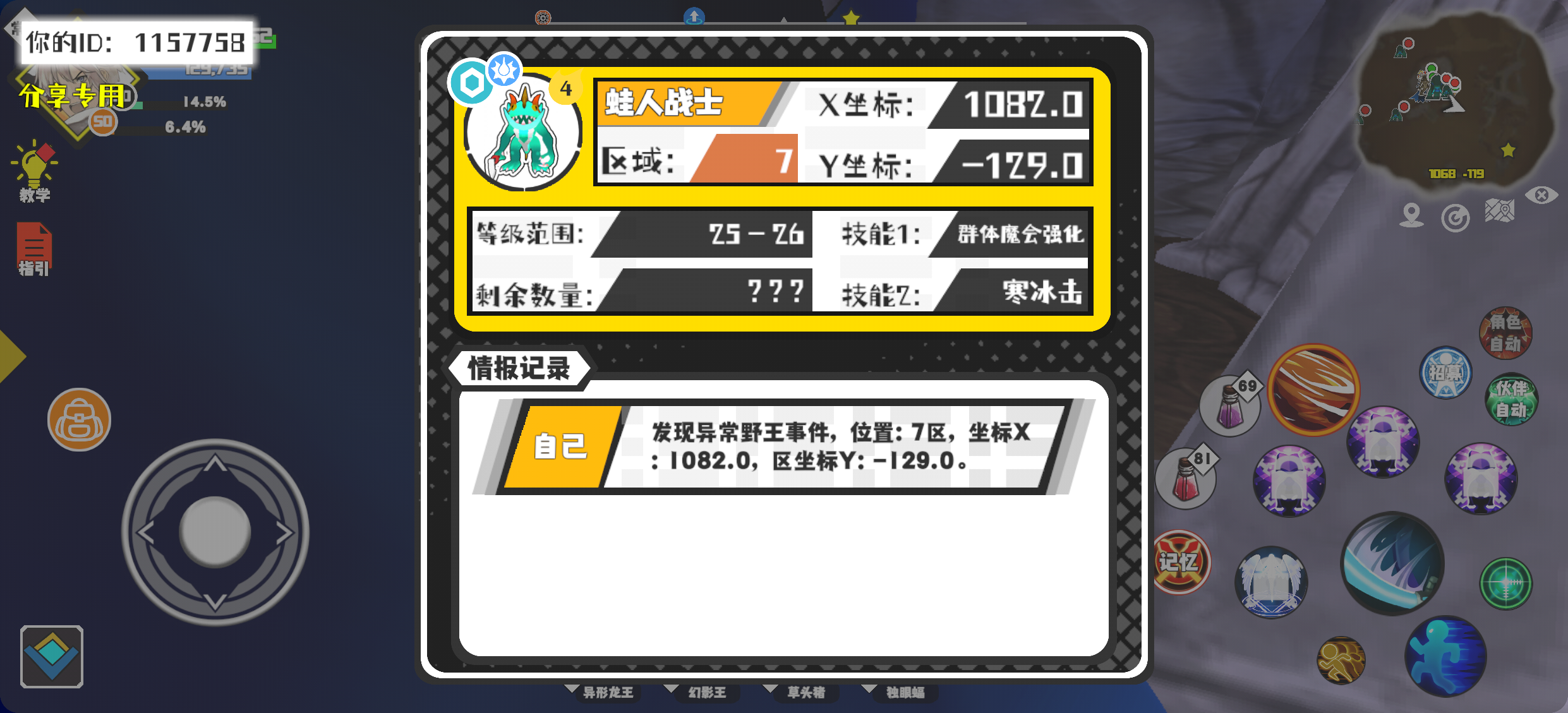 幸运时刻分享! 【野王异常出没】1月3日上午7点 - 蛙人战士【强度4】 【7区】 【X:1082.0, Y:-129.0】#超数据世界