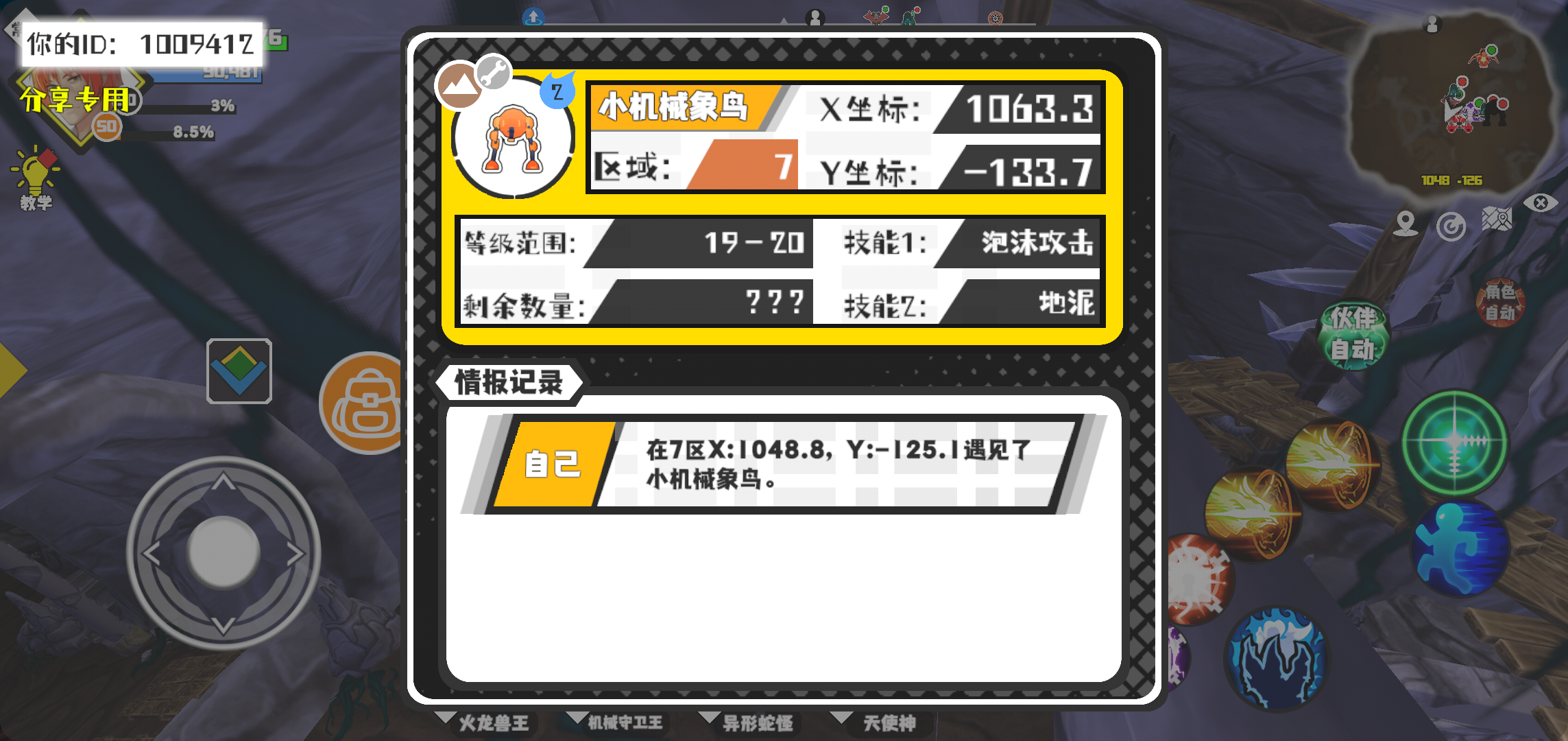 幸运时刻分享! 【魔物异常出没】1月3日上午11点 - 小机械象鸟【强度2】 【7区】 【X:1063.3, Y:-133.7】#超数据世界