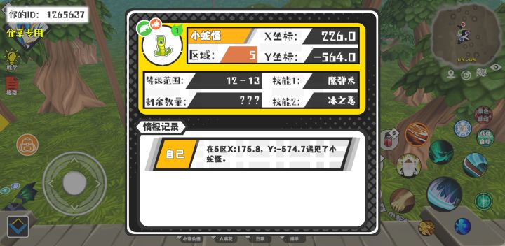 #超数据世界 幸运时刻分享! 【魔物异常出没】4月19日上午2点 - 小蛇怪【强度1】 【5区】 【X:226.0, Y:-564.0】