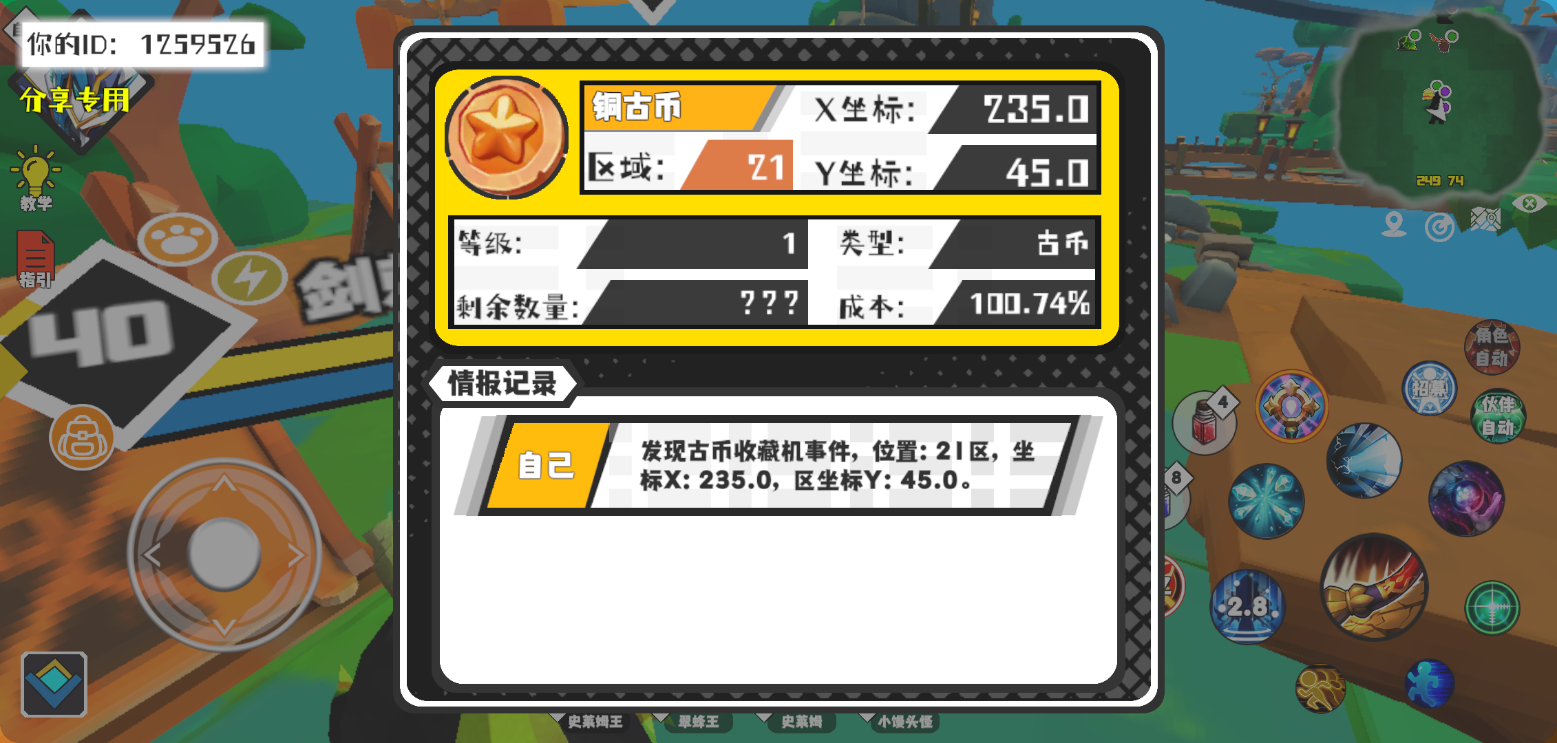 幸运时刻分享! 【古币收藏机】12月30日上午9点 - 铜古币 【21区】 【X:235.0, Y:45.0】#超数据世界
