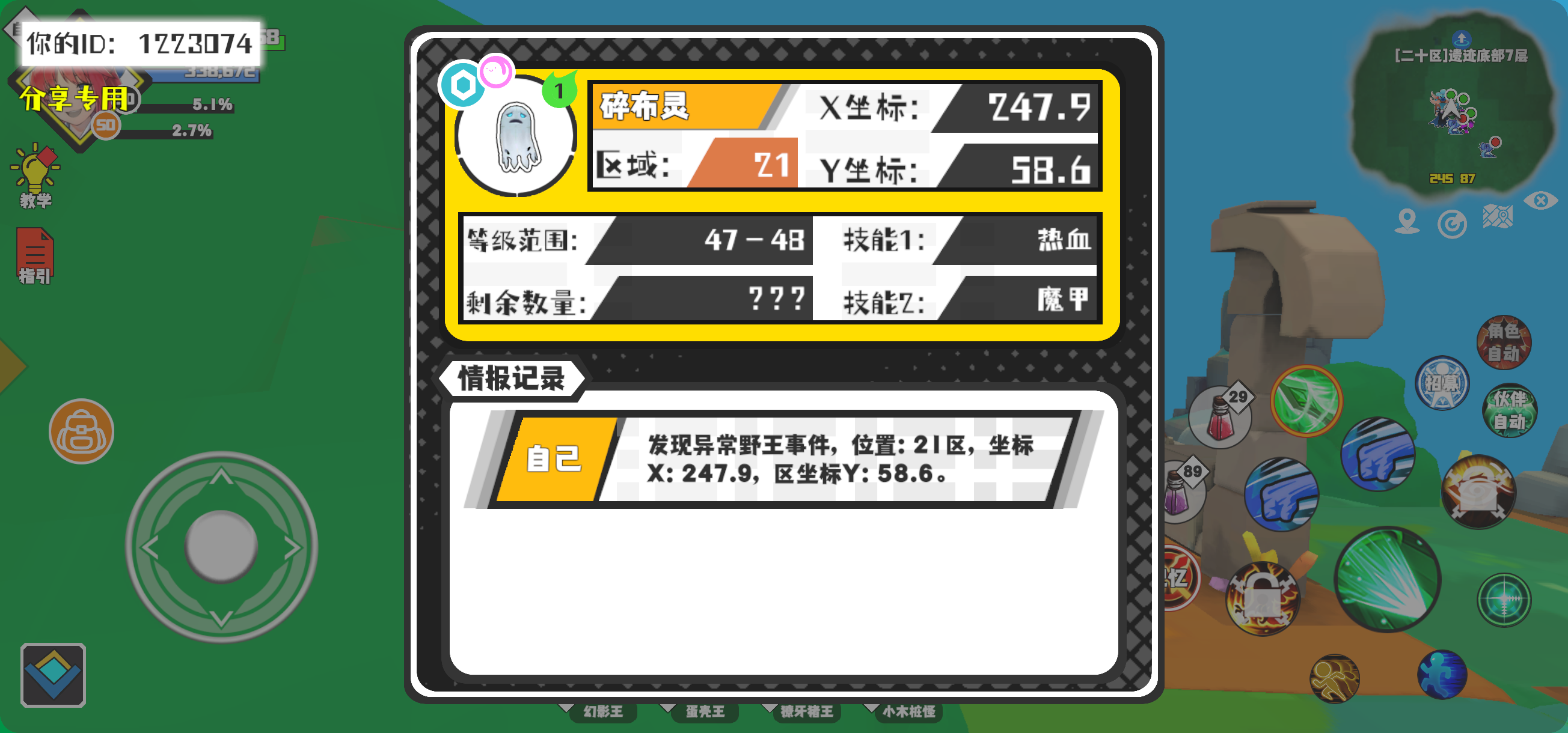 幸运时刻分享! 【野王异常出没】12月28日下午11点 - 碎布灵【强度1】 【21区】 【X:247.9, Y:58.6】#超数据世界