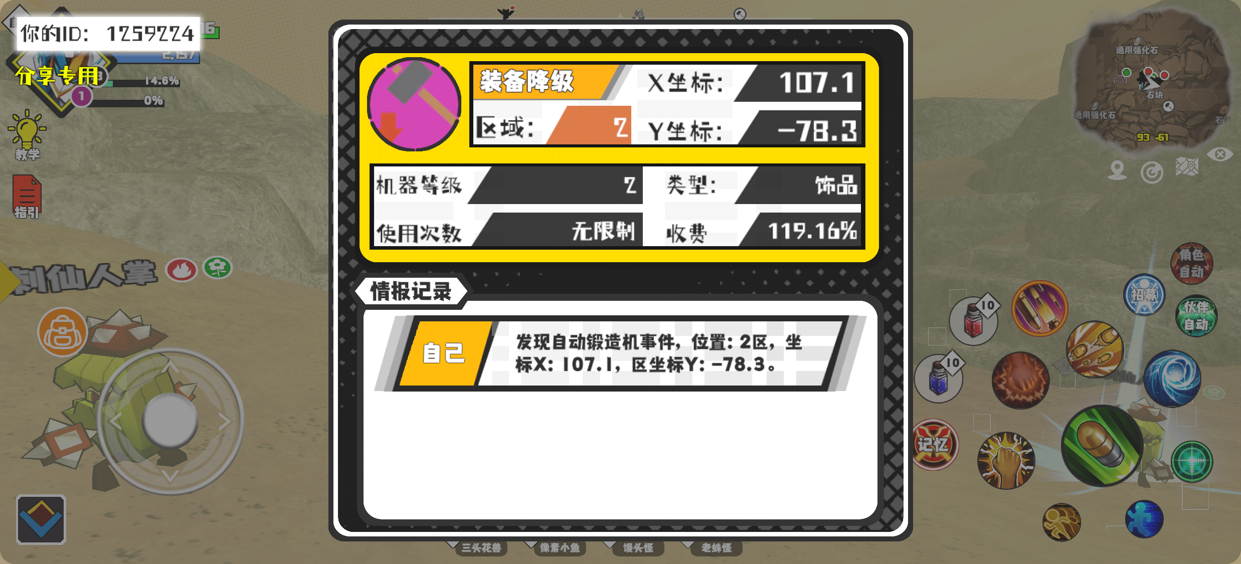 幸运时刻分享! 【自动锻造机】12月27日下午7点 - 装备降级【2级机器】 【2区】 【X:107.1, Y:-78.3】#超数据世界