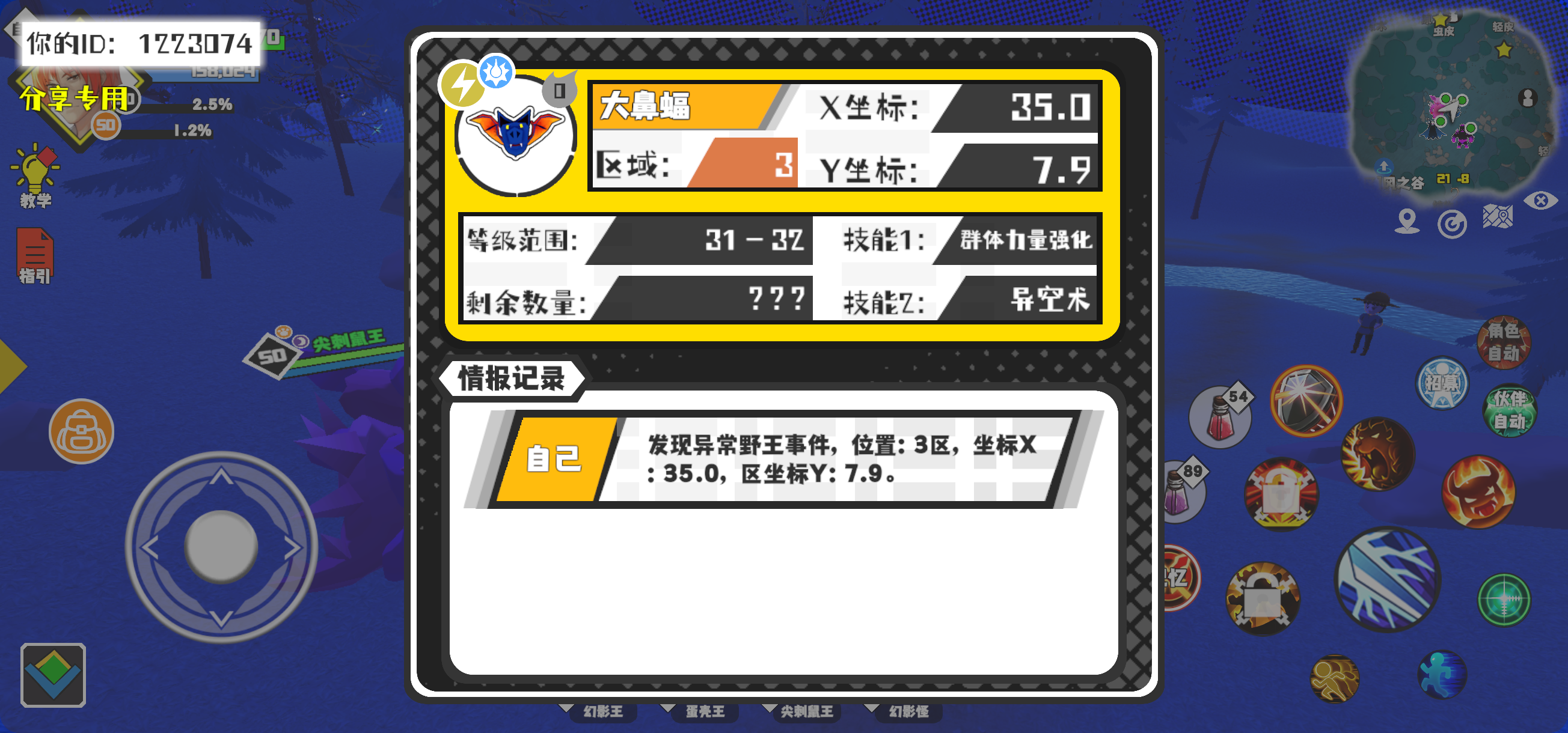 幸运时刻分享! 【野王异常出没】12月27日下午1点 - 大鼻蝠【强度0】 【3区】 【X:35.0, Y:7.9】#超数据世界
