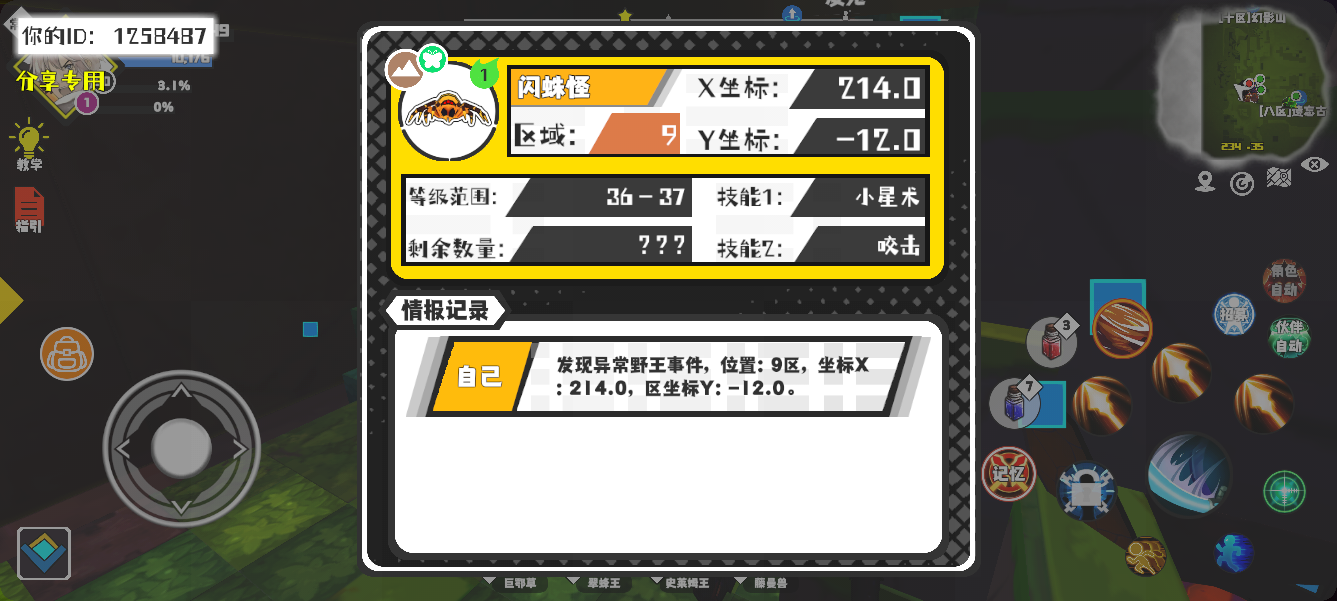 幸运时刻分享! 【野王异常出没】12月26日下午7点 - 闪蛛怪【强度1】 【9区】 【X:214.0, Y:-12.0】#超数据世界