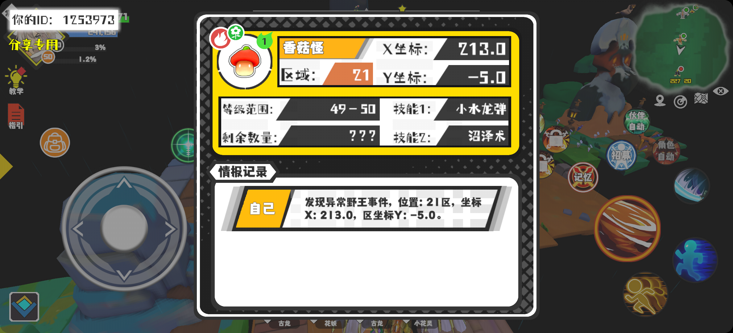 幸运时刻分享! 【野王异常出没】12月26日下午10点 - 香菇怪【强度1】 【21区】 【X:213.0, Y:-5.0】#超数据世界