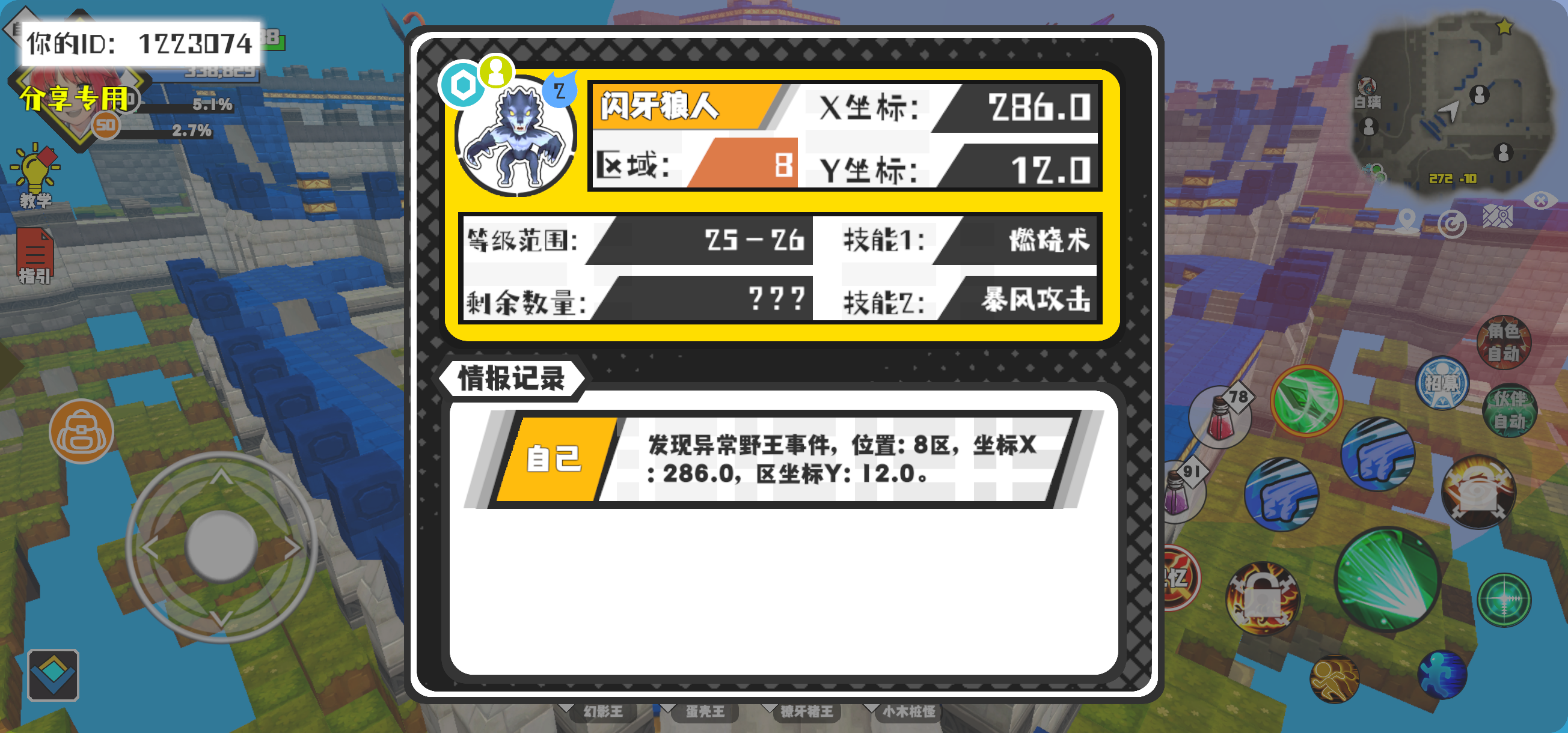 幸运时刻分享! 【野王异常出没】12月24日上午8点 - 闪牙狼人【强度2】 【8区】 【X:286.0, Y:12.0】#超数据世界