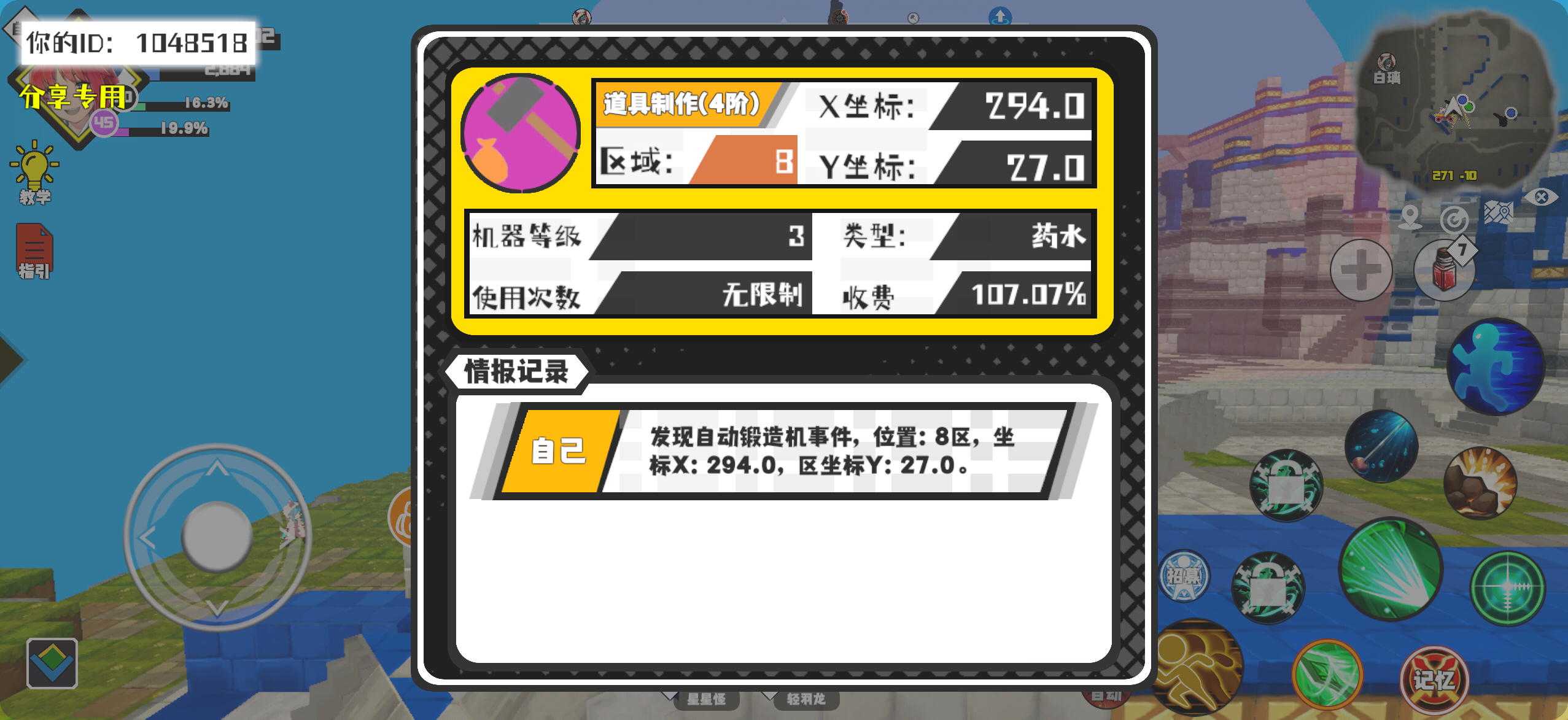 幸运时刻分享! 【自动锻造机】12月22日下午10点 - 道具制作(4阶)【3级机器】 【8区】 【X:294.0, Y:27.0】#超数据世界