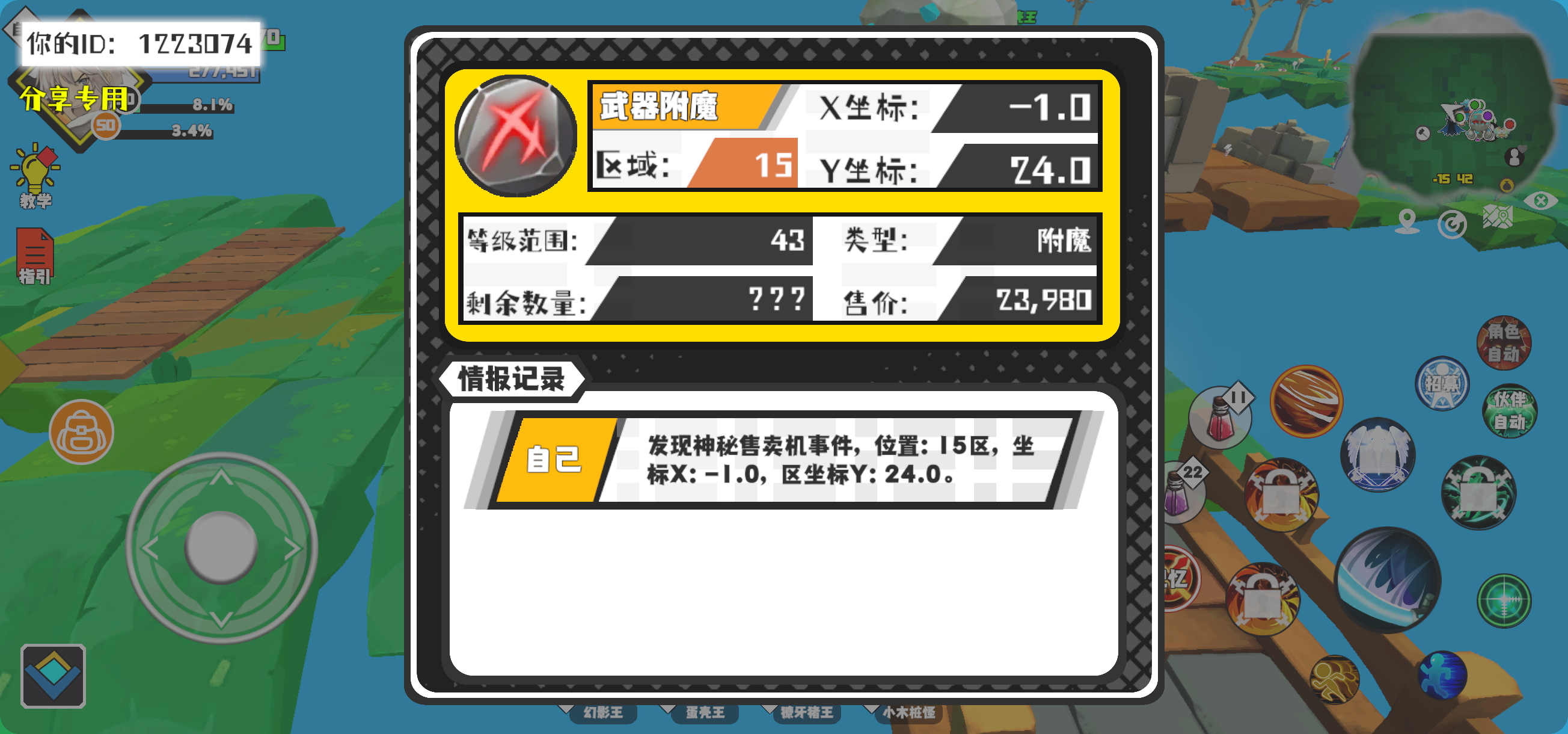 幸运时刻分享! 【神秘售卖机】12月22日下午6点 - 武器附魔【43级 】【稀有度:精良】 【15区】 【X:-1.0, Y:24.0】#超数据世界