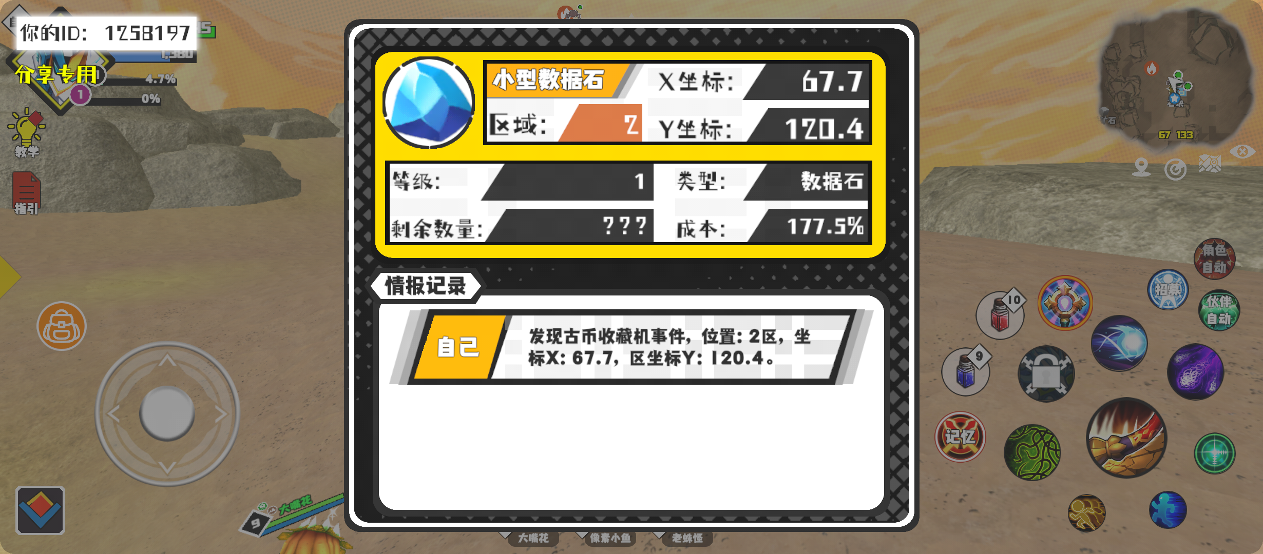 #超数据世界 幸运时刻分享! 【古币收藏机】12月20日下午8点 - 小型数据石 【2区】 【X:67.7, Y:120.4】