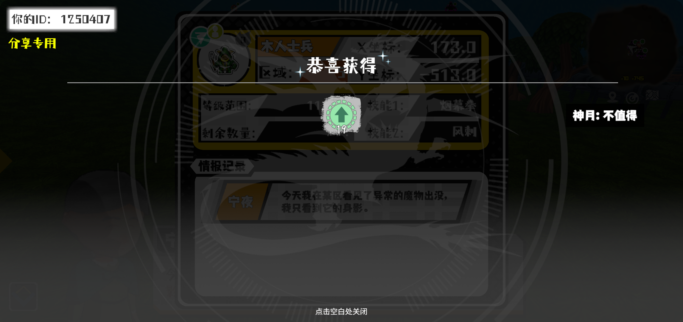 幸运时刻分享! 【魔物异常出没】12月20日下午10点 - 木人士兵【强度0】 【5区】 【X:173.0, Y:-513.0】#超数据世界