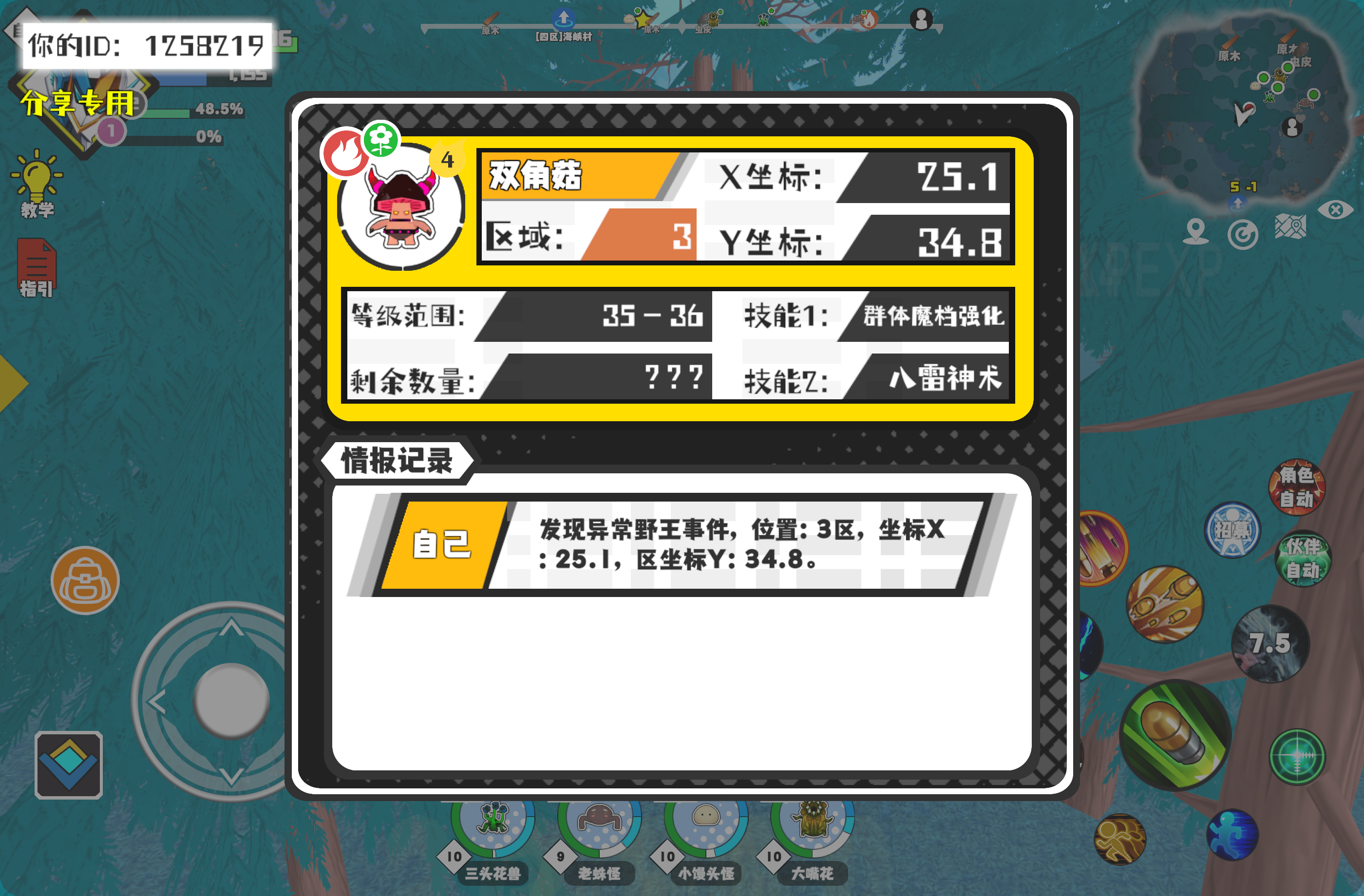 幸运时刻分享! 【野王异常出没】12月20日下午10点 - 双角菇【强度4】 【3区】 【X:25.1, Y:34.8】#超数据世界