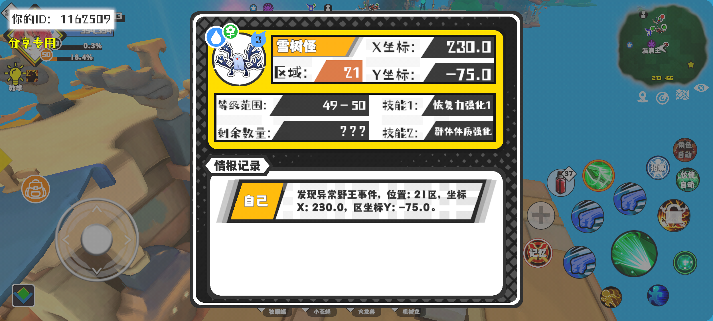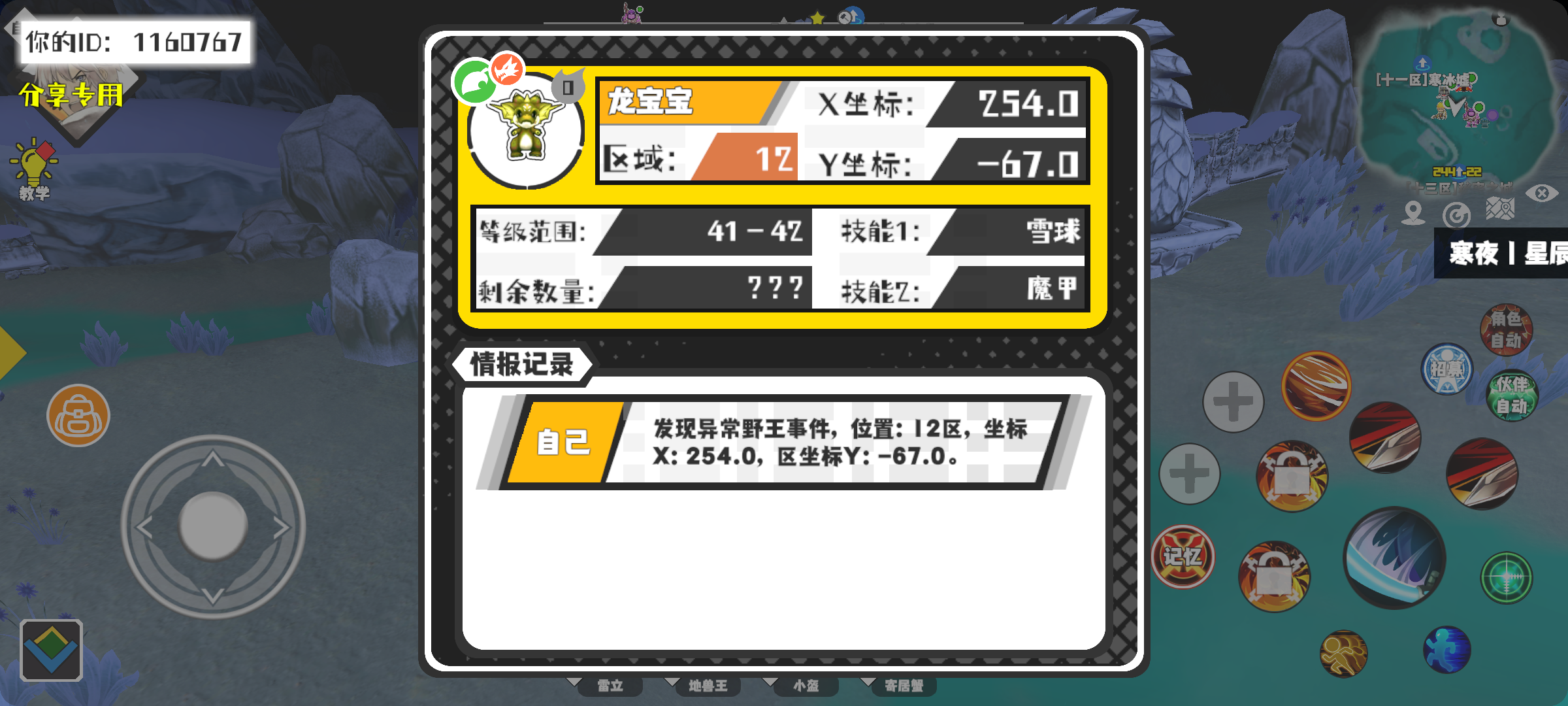 #超数据世界 幸运时刻分享! 【野王异常出没】12月20日上午10点 - 龙宝宝【强度0】 【12区】 【X:254.0, Y:-67.0】