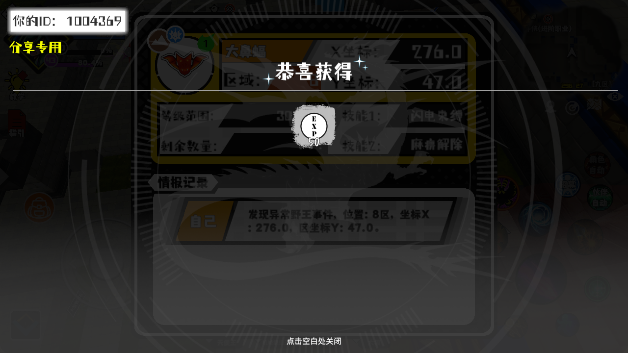 幸运时刻分享! 【野王异常出没】12月19日下午12点 - 大鼻蝠【强度1】 【8区】 【X:276.0, Y:47.0】#超数据世界