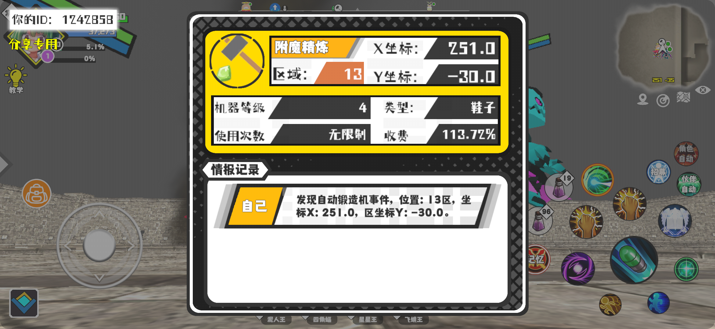 #超数据世界 幸运时刻分享! 【自动锻造机】12月18日下午1点 - 附魔精炼【4级机器】 【13区】 【X:251.0, Y:-30.0】