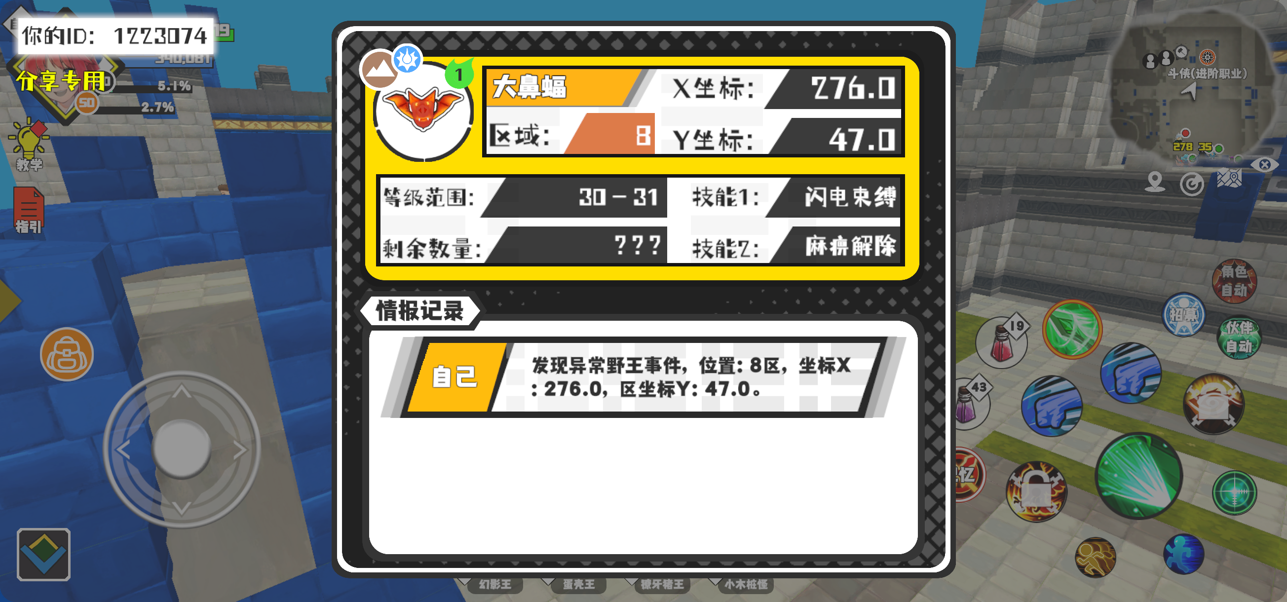 幸运时刻分享! 【野王异常出没】12月18日下午11点 - 大鼻蝠【强度1】 【8区】 【X:276.0, Y:47.0】#超数据世界