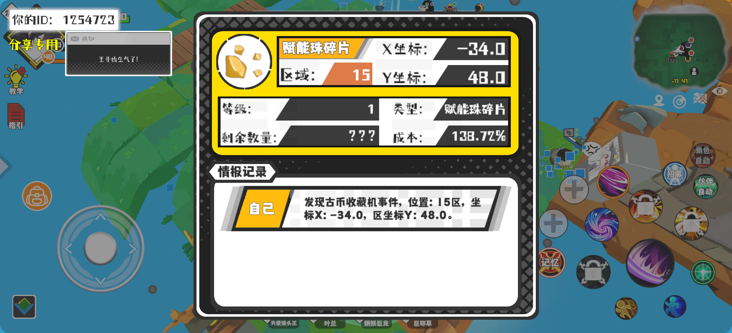 幸运时刻分享! 【古币收藏机】12月17日下午6点 - 赋能珠碎片 【15区】 【X:-34.0, Y:48.0】#超数据世界